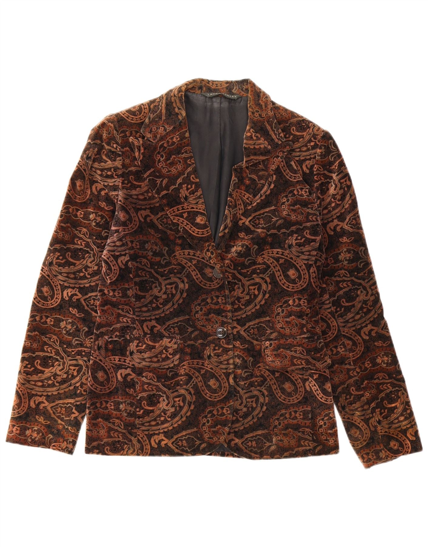 Home > Damen > Depop-Kleidung > Laura Ashley Damen-Blazer aus Samt mit 2 Knöpfen, Gr. 8, klein, braun, Paisleymuster