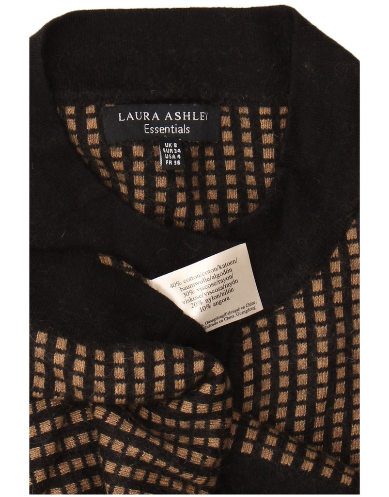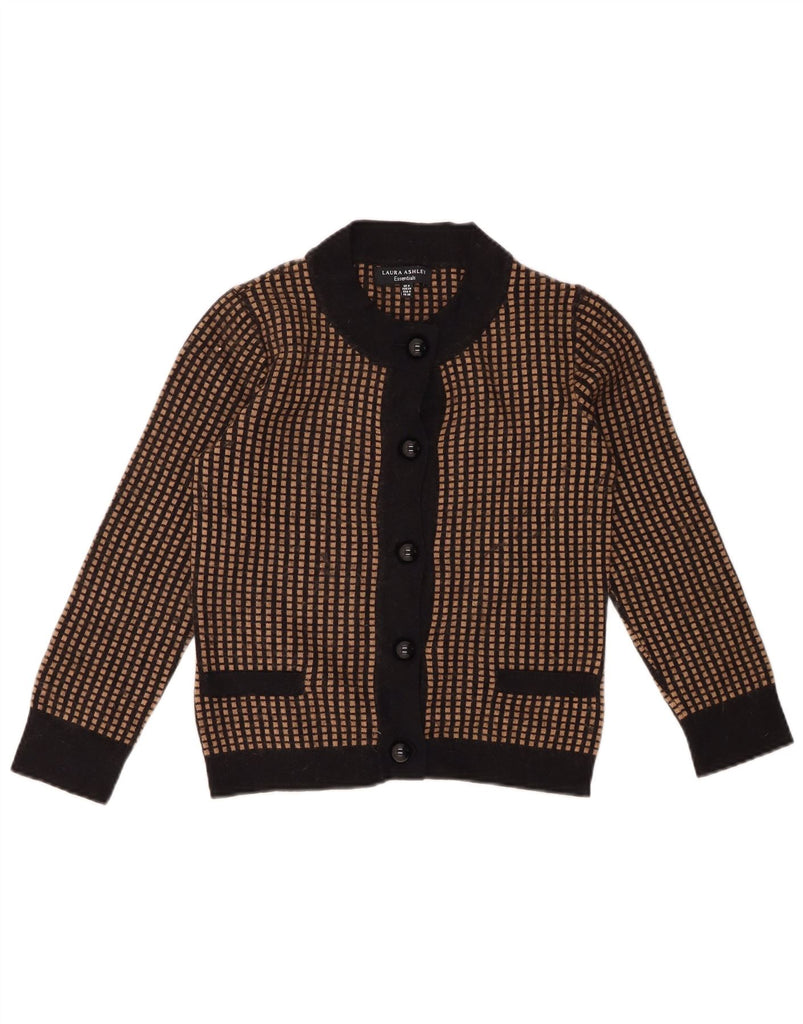 LAURA ASHLEY Womens Crop Cardigan Sweater UK 8 Small Beige Geometric
