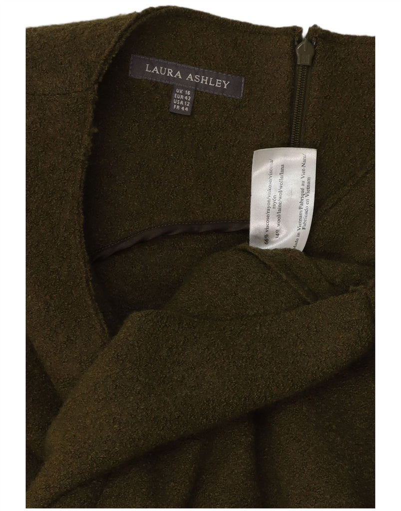 LAURA ASHLEY Womens Sleeveless Sheath Dress UK 16 Large Khaki Viscose