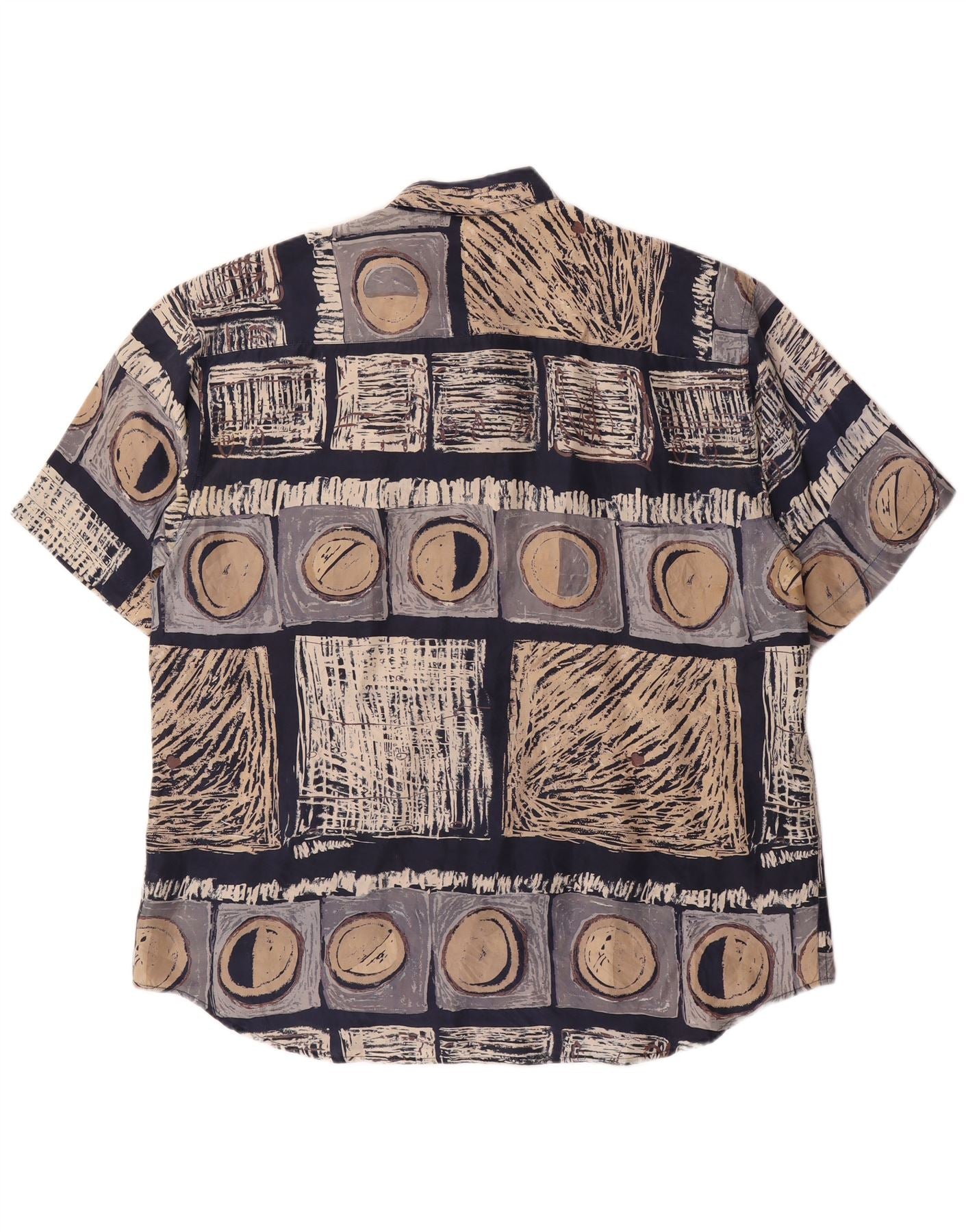 LAURENT Herren-Kurzarmhemd, groß, marineblau, geometrische Seide