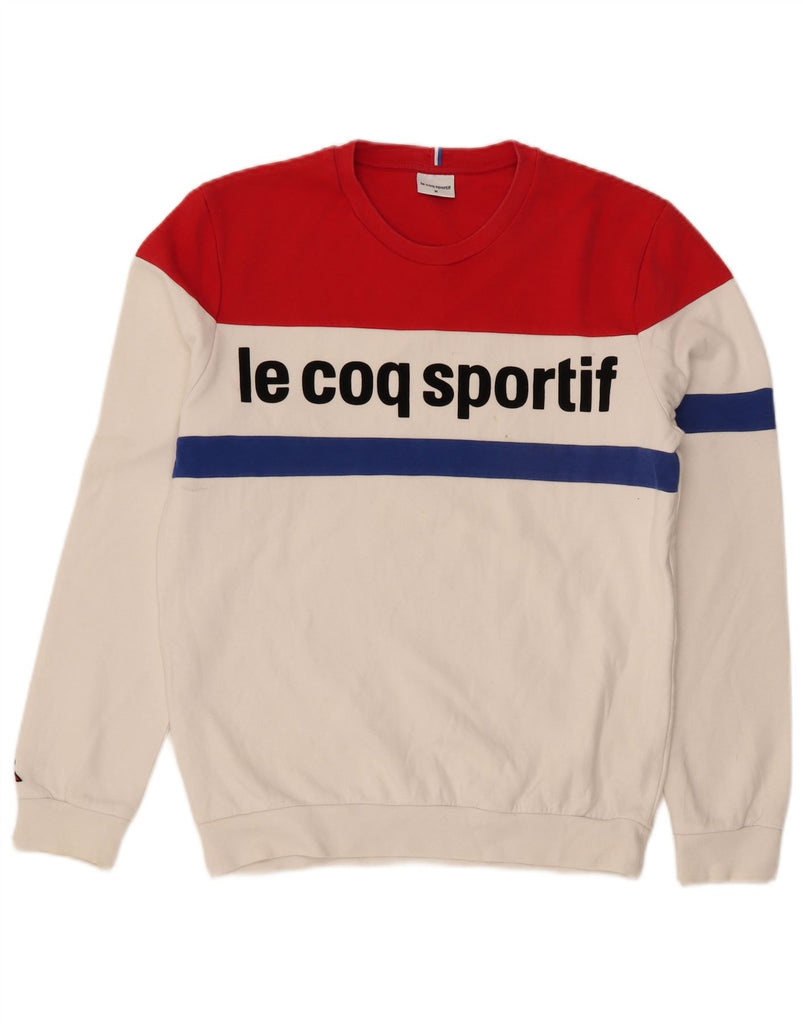LE COQ SPORTIF Mens Graphic Sweatshirt Jumper Medium White Colourblock