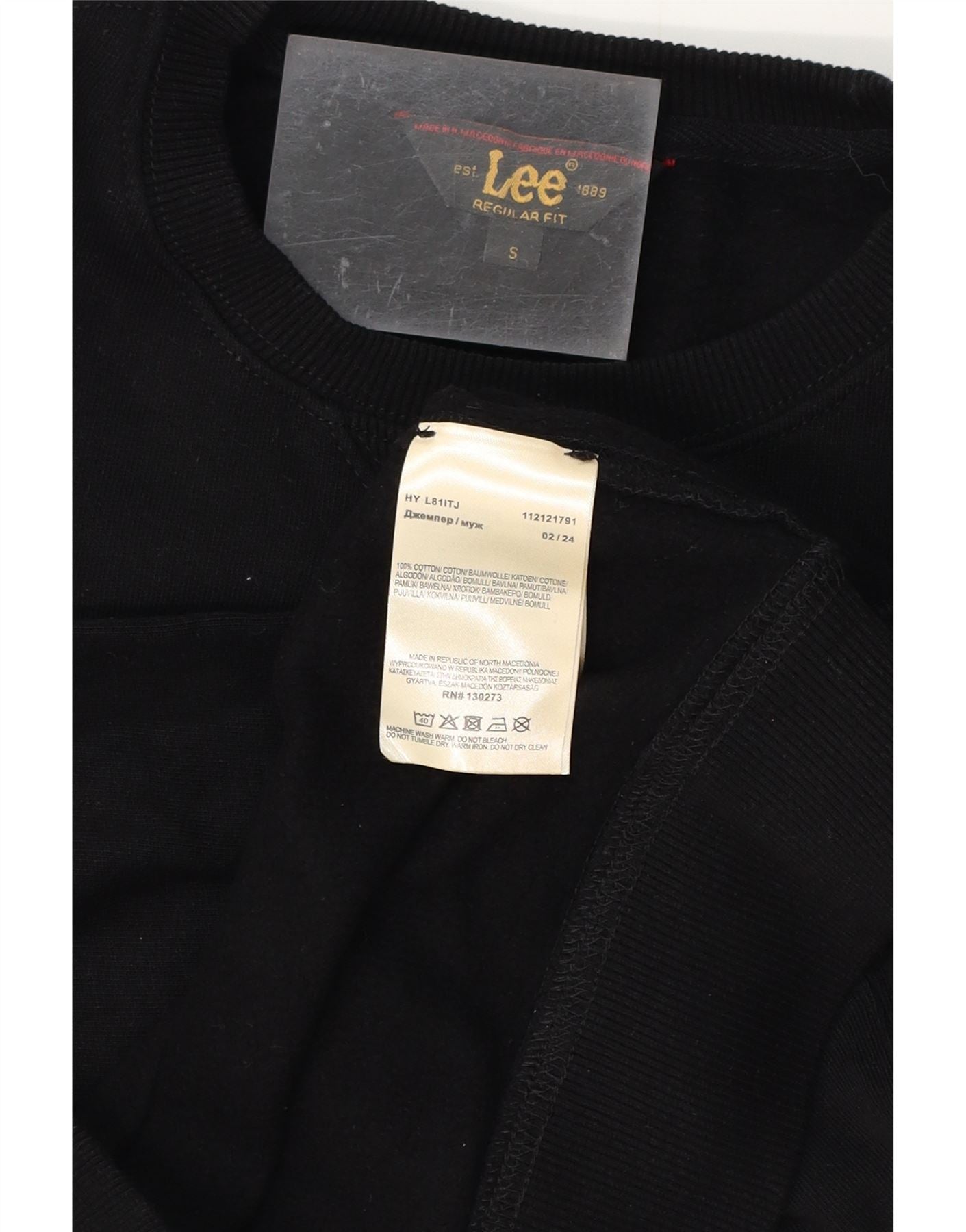 LEE Herren-Sweatshirt mit normaler Passform, Größe S, schwarze Baumwolle