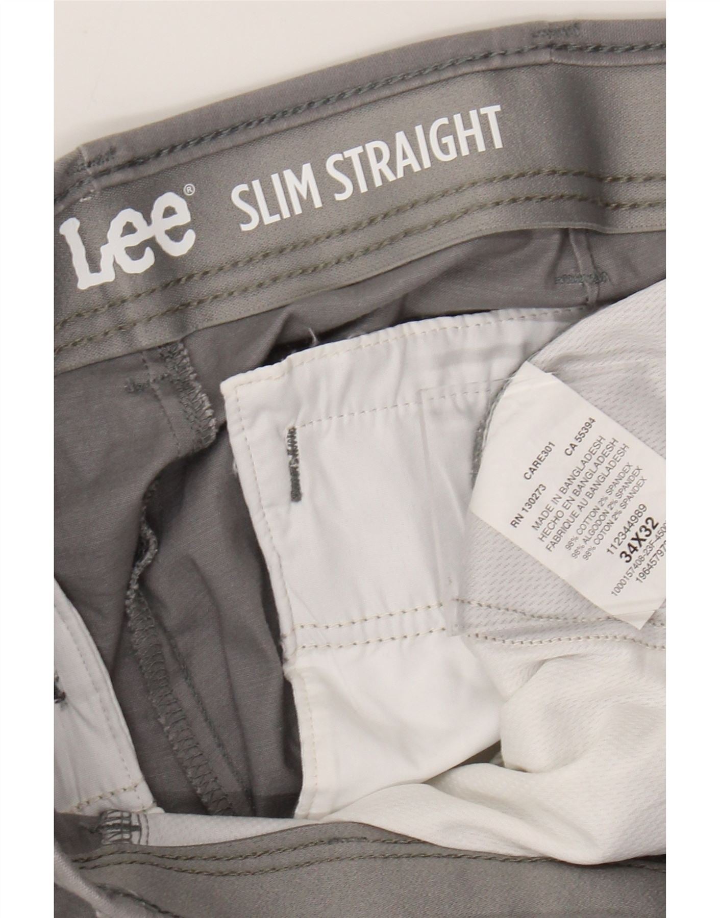 LEE Gerade, schmale, verkürzte Herrenhose, W34, L24, graue Baumwolle