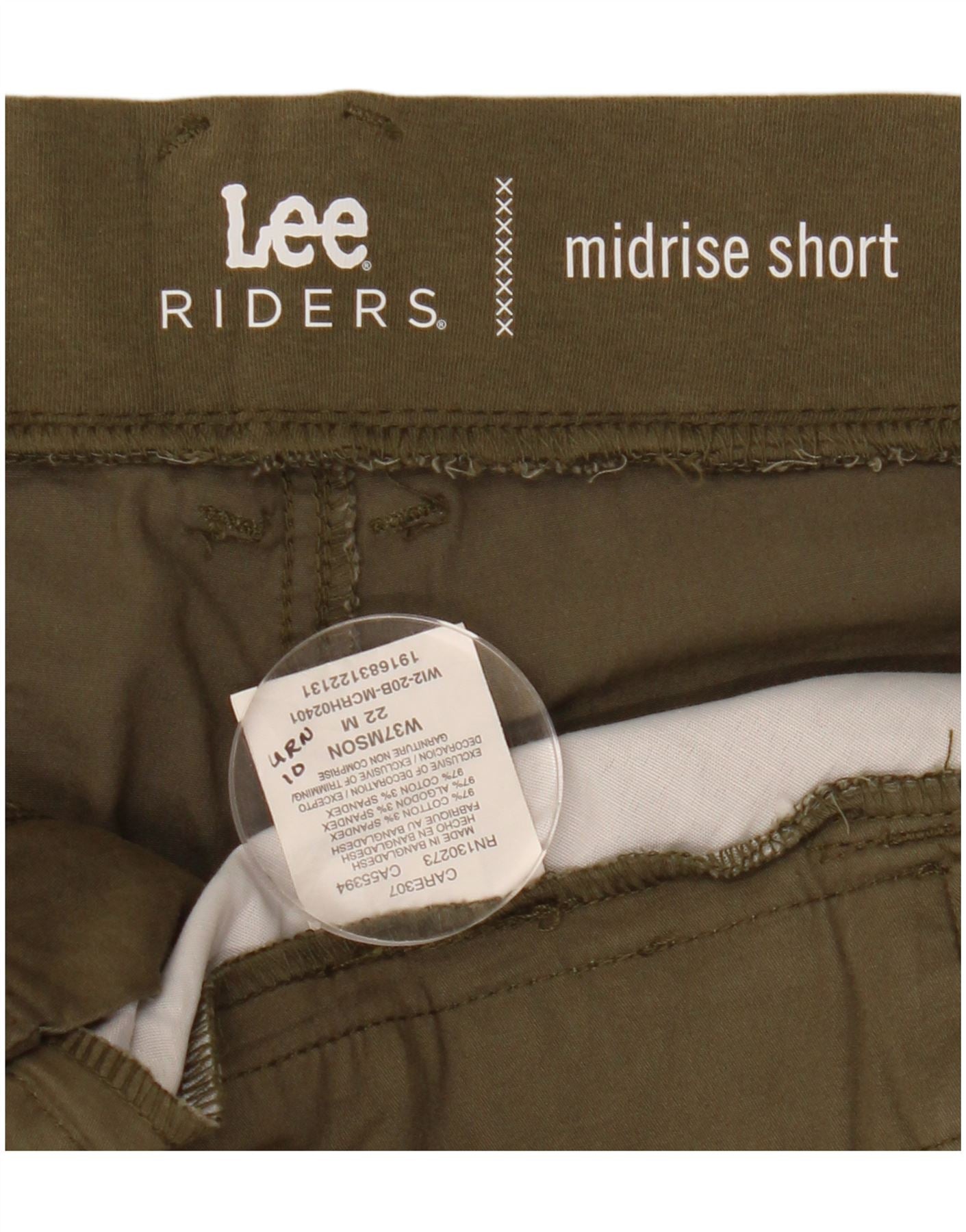 LEE Damen Riders Mid Rise Chino Shorts US 22 3XL W44 Khaki Baumwolle
