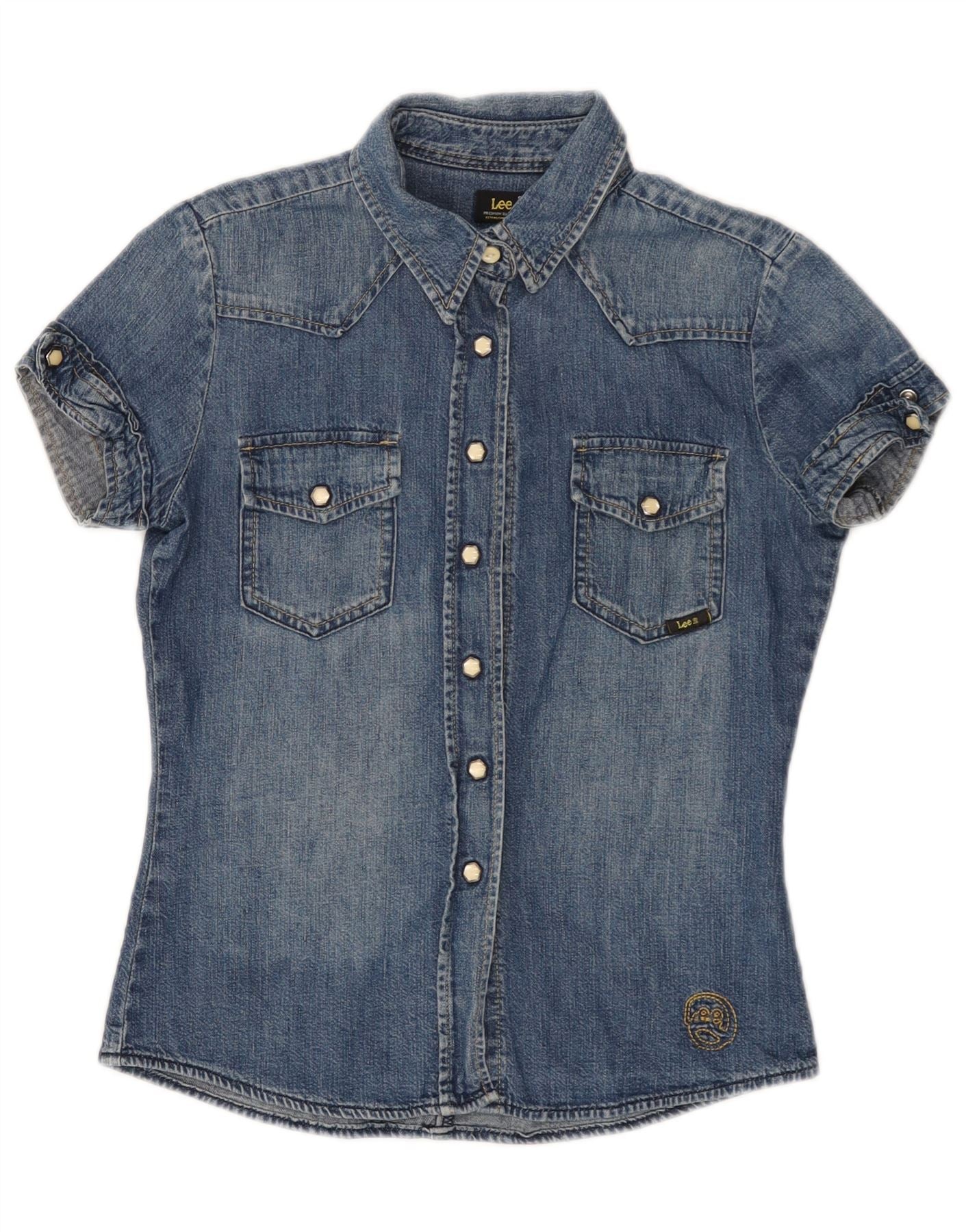 LEE Damen Kurzarm-Jeanshemd UK 10 Small Blau Baumwolle
