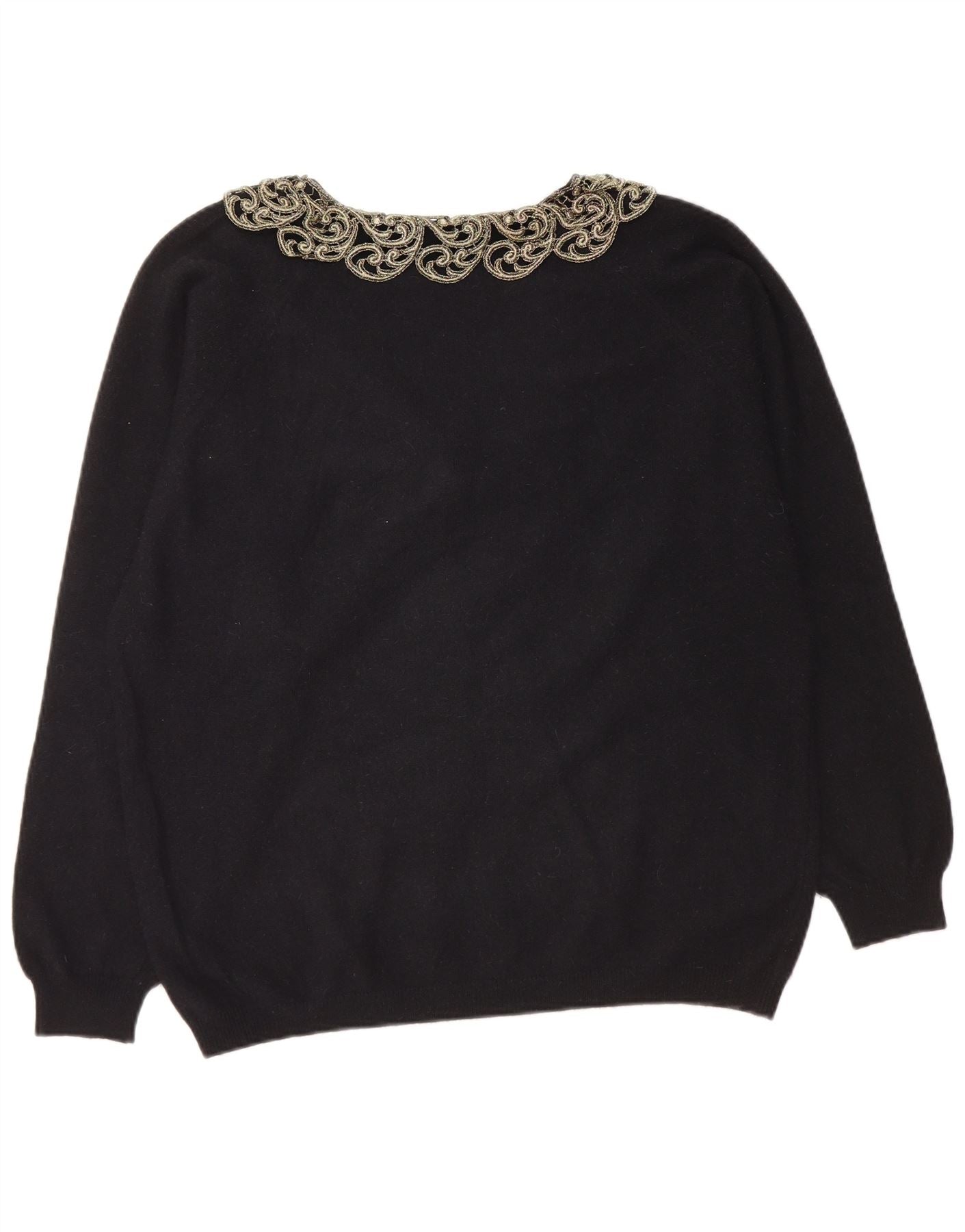 LETIZIA L. Damen-Pullover mit V-Ausschnitt, UK 16, Größe L, schwarze Paisley-Wolle