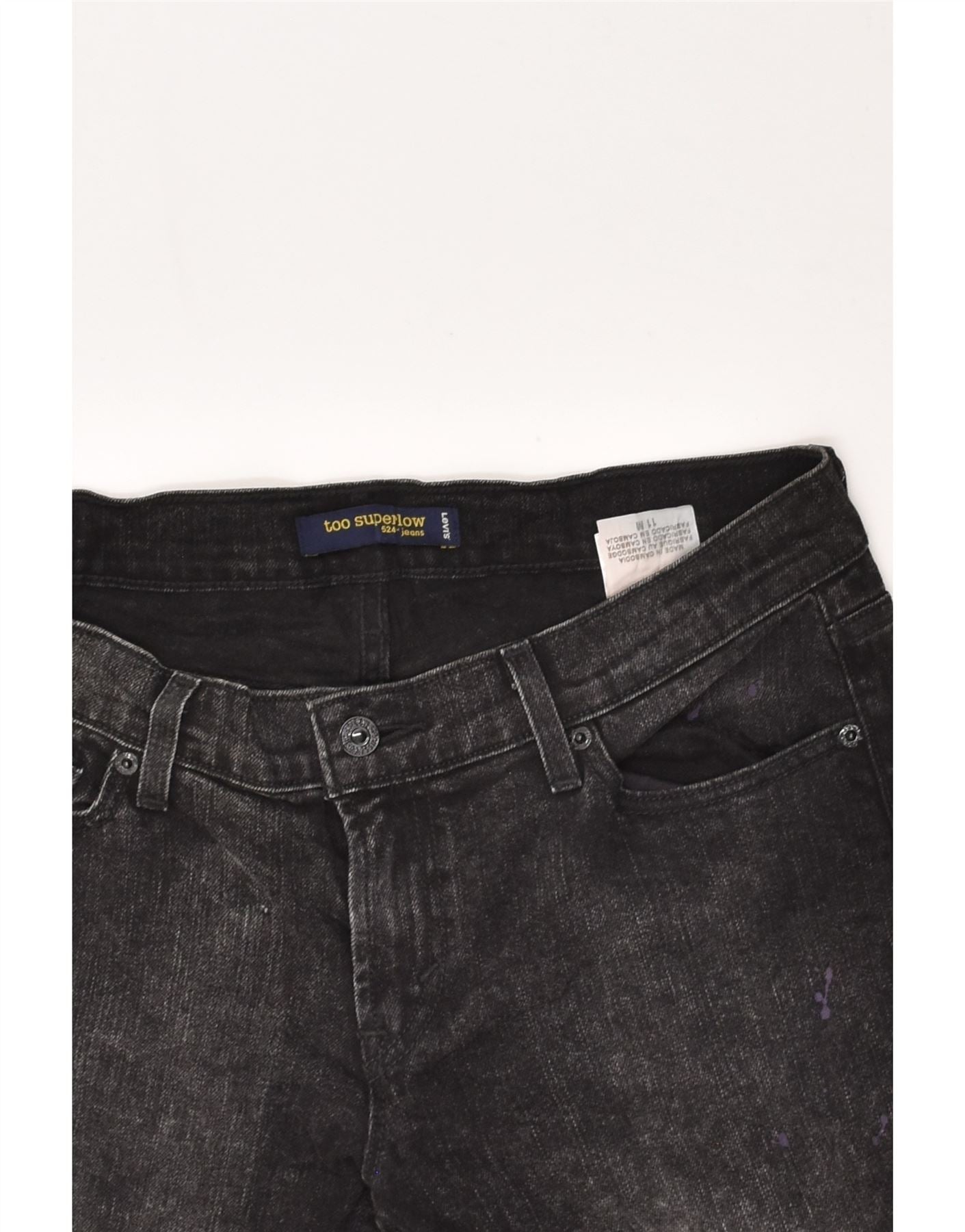 LEVI'S Damen 524 Super Low Slim Jeans UK 11 Large W34 L33 Schwarze Baumwolle