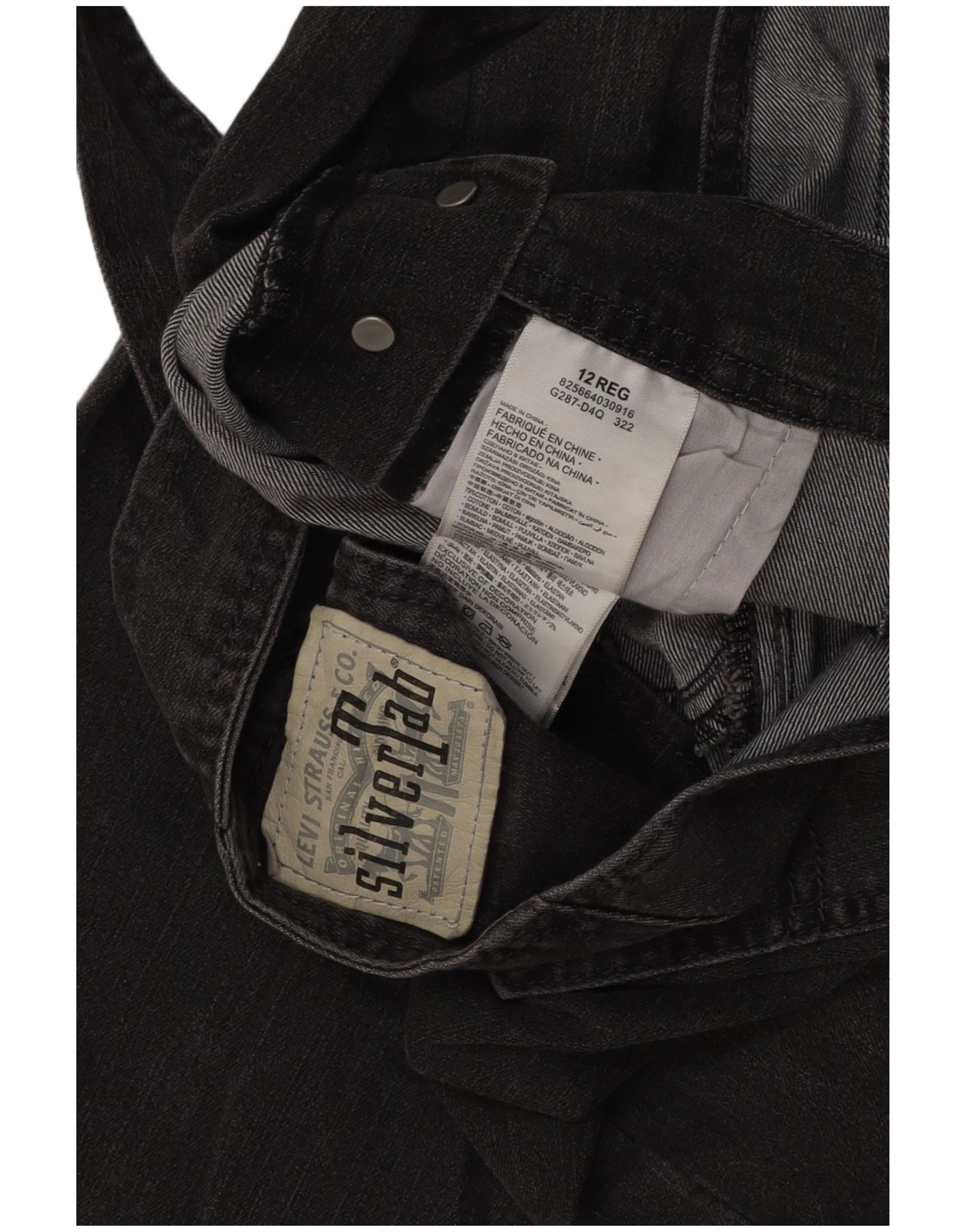 LEVI'S Mädchen-Latzhose, gerade Jeans, 11–12 Jahre, W32, L24, graue Baumwolle