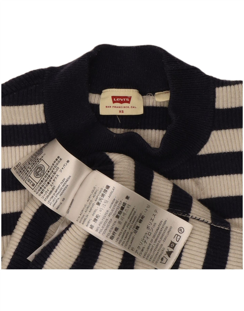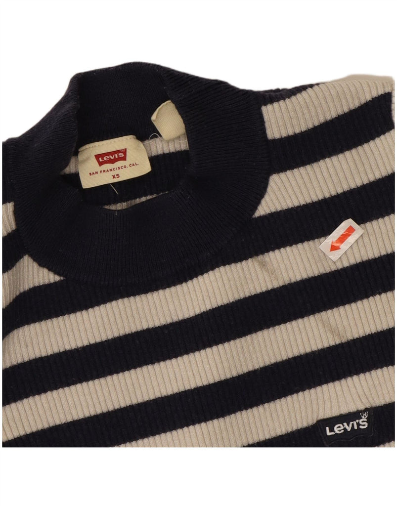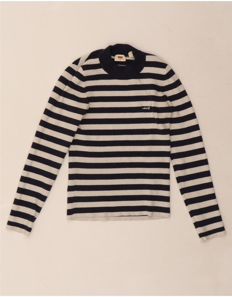 LEVI'S Girls Turtle Neck Jumper Sweater 6-7 Years XS Navy Blue Striped