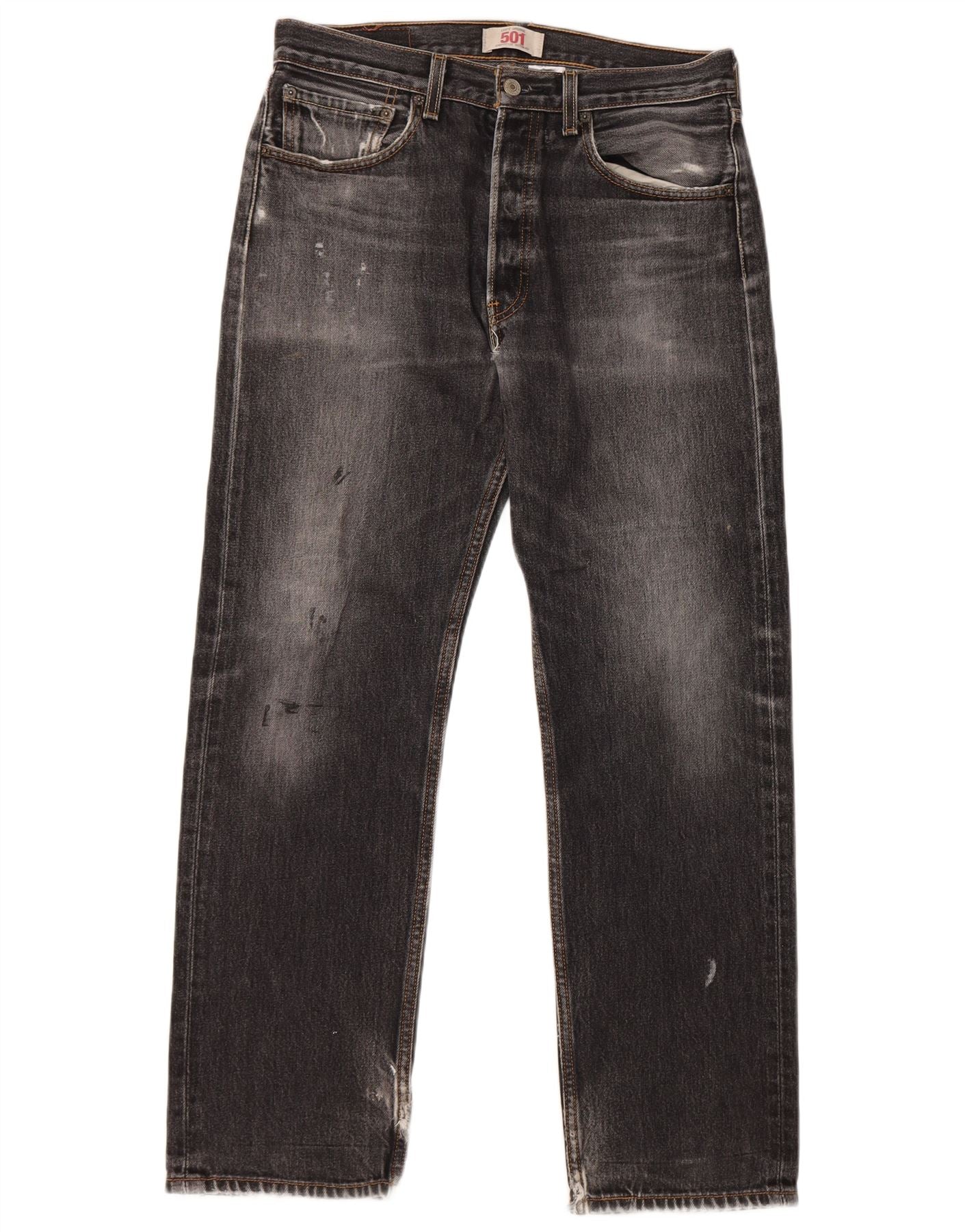 LEVI'S Herren 501 Straight Jeans W32 L32 Schwarze Baumwolle