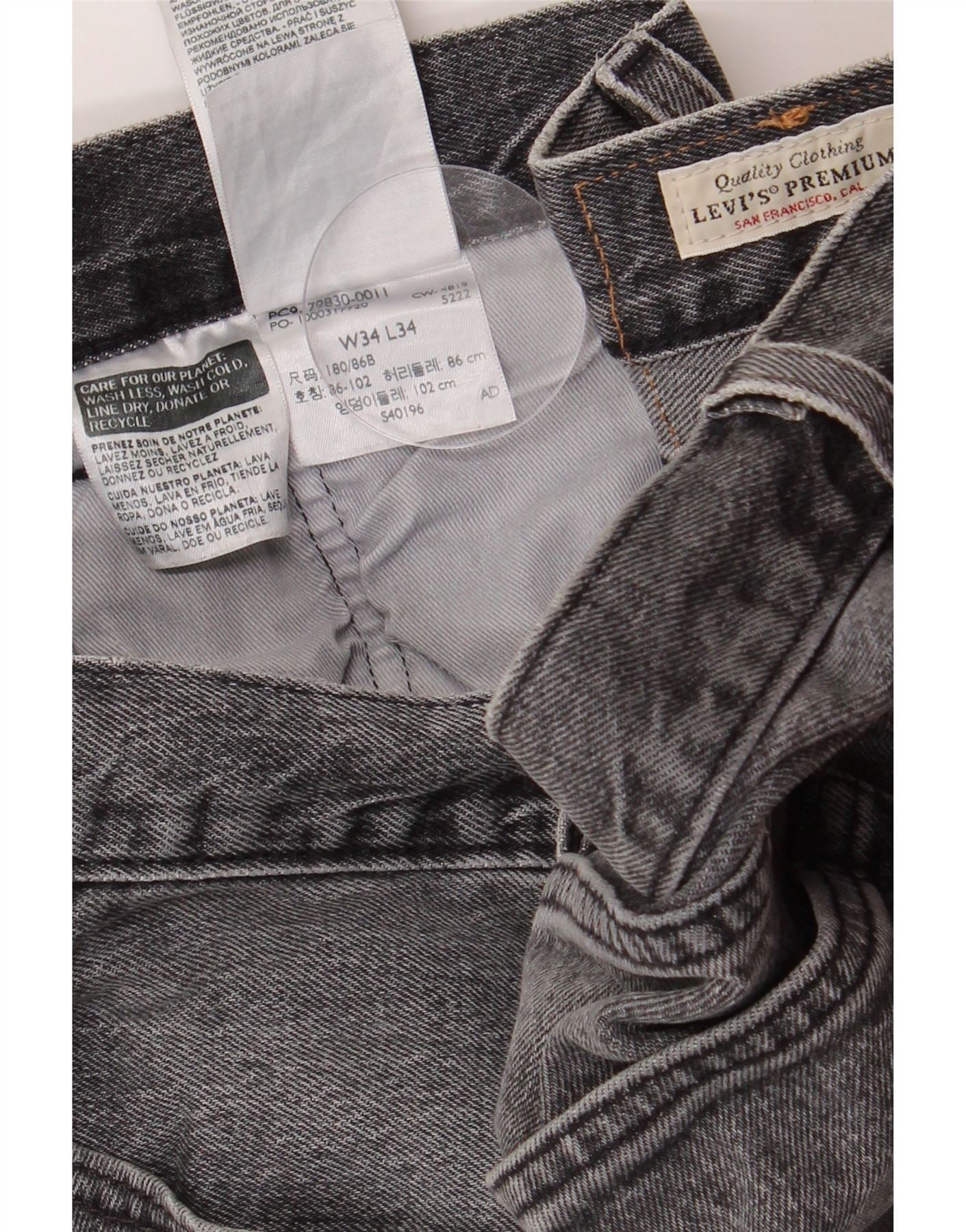 LEVI'S Herren 501 Straight Jeans W34 L34 Graue Baumwolle