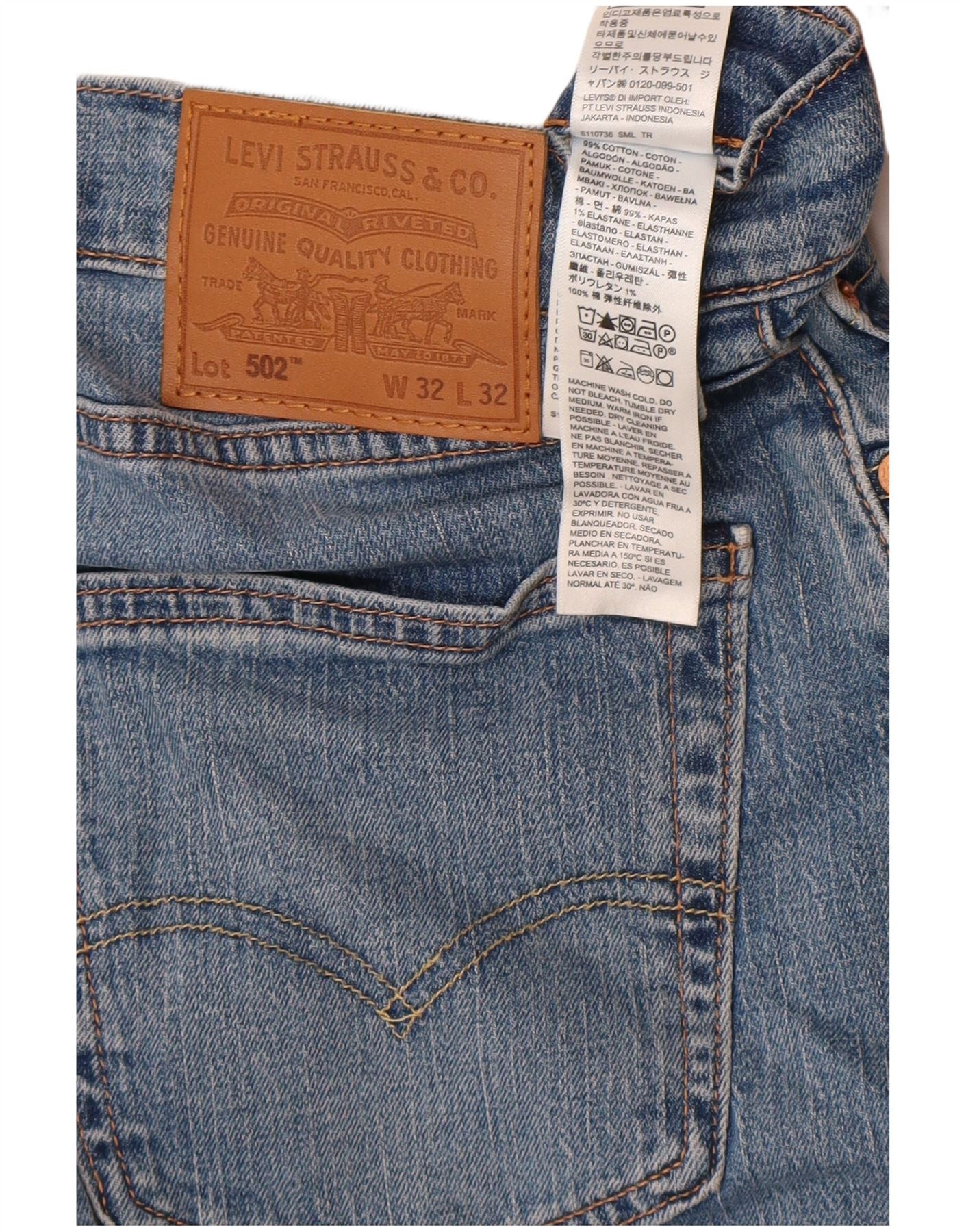 Levi's Herren 502 Tapered Jeans W32 L32 Blaue Baumwolle