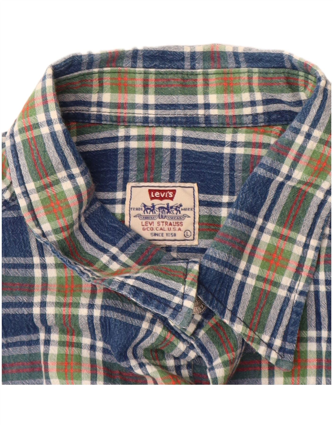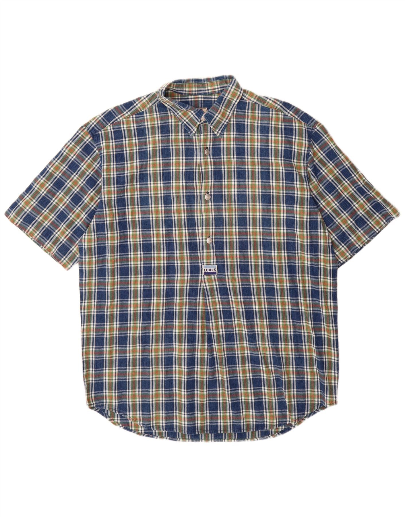 LEVI'S Herren Kurzarm-Pulloverhemd, groß, blau kariert, Baumwolle