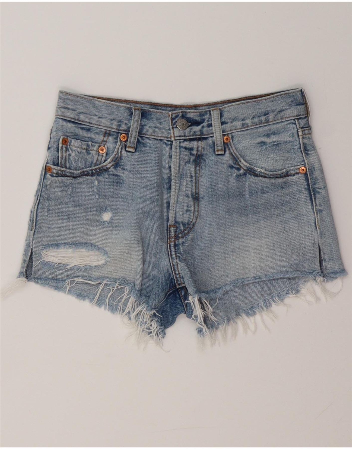 LEVI'S Damen 501 Distressed Denim Shorts W24 XS Blaue Baumwolle