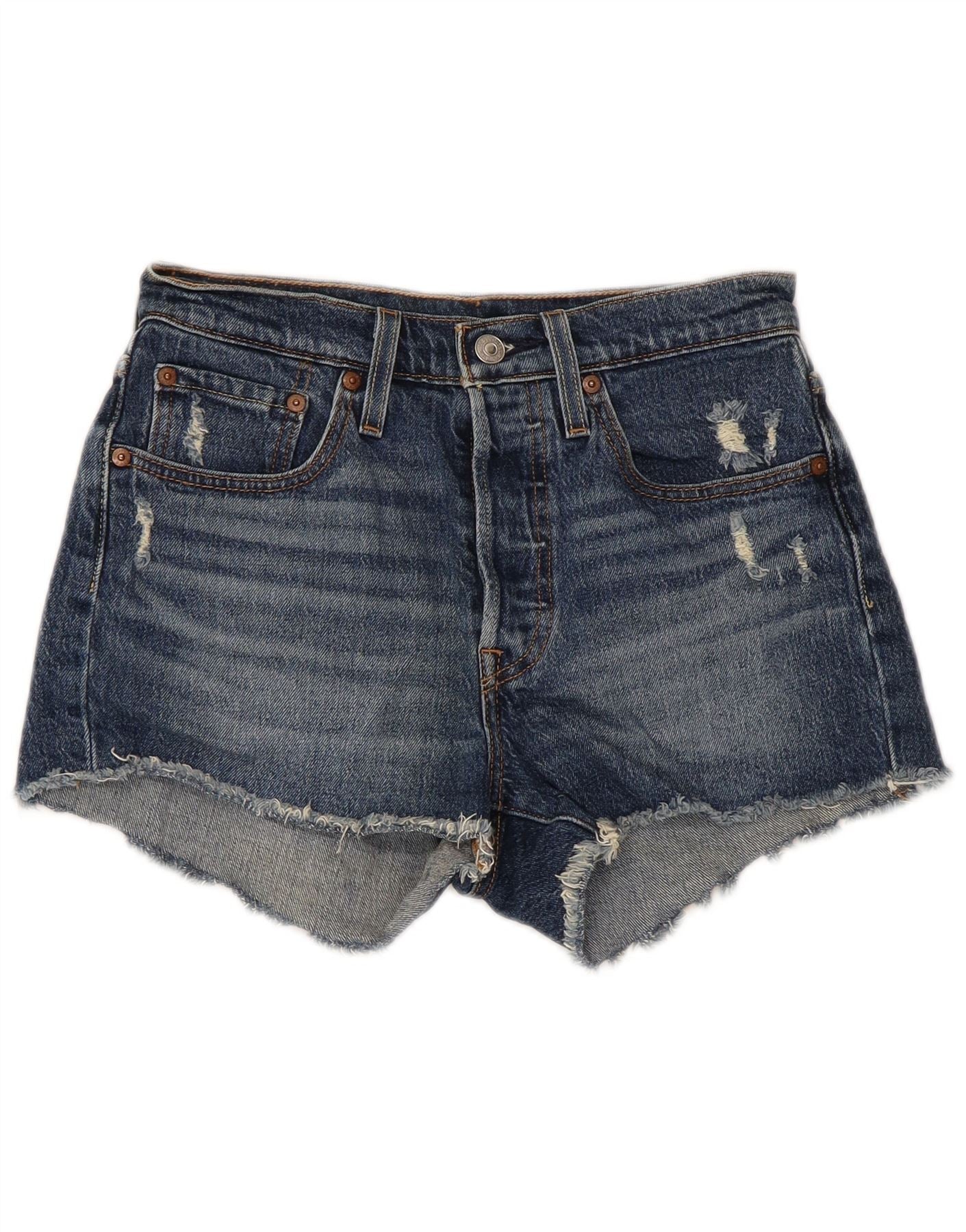 LEVI'S Damen 501 Distressed Denim Shorts W26 Small Blaue Baumwolle