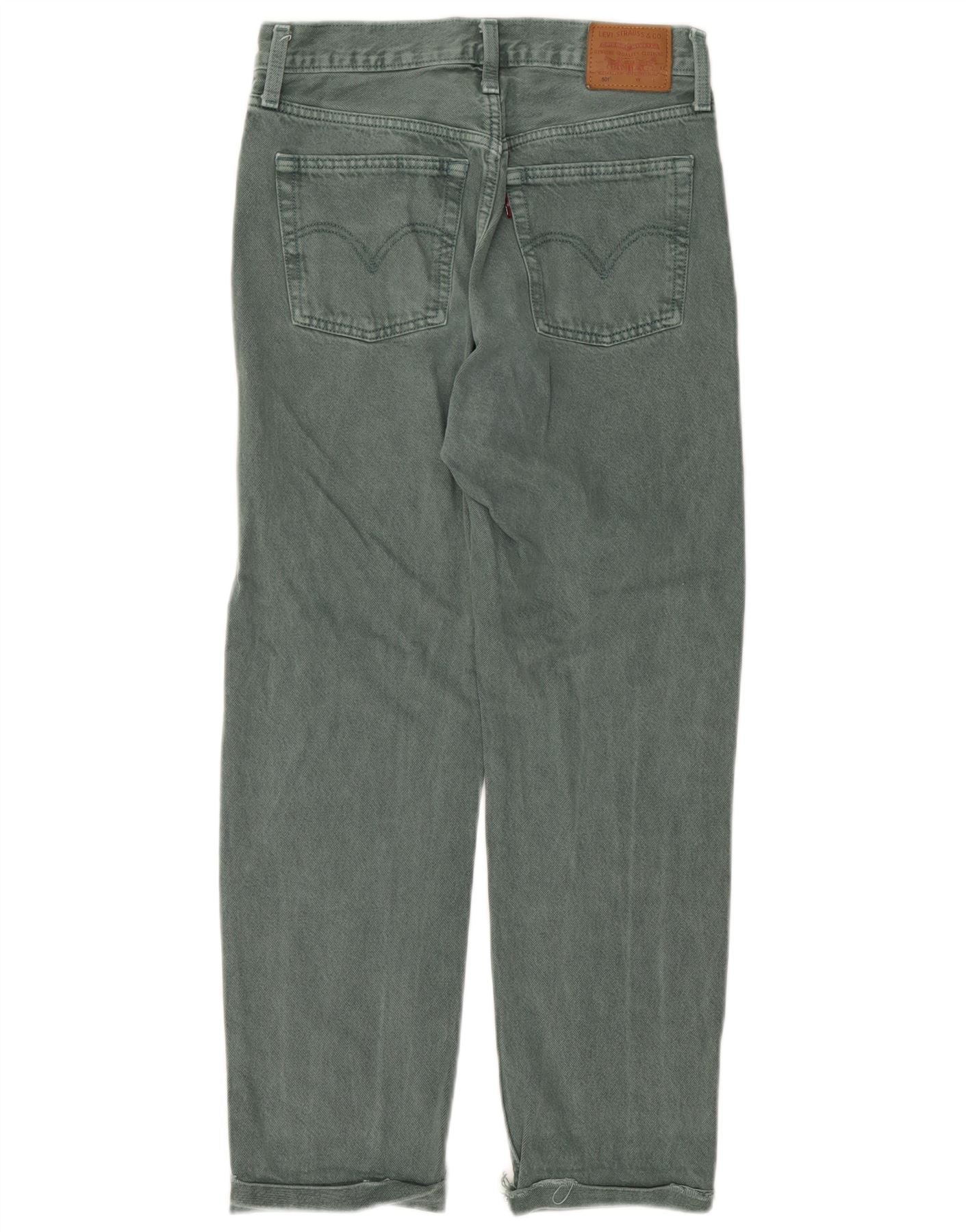 LEVI'S Damen 501 Straight Jeans W27 L28 Grüne Baumwolle
