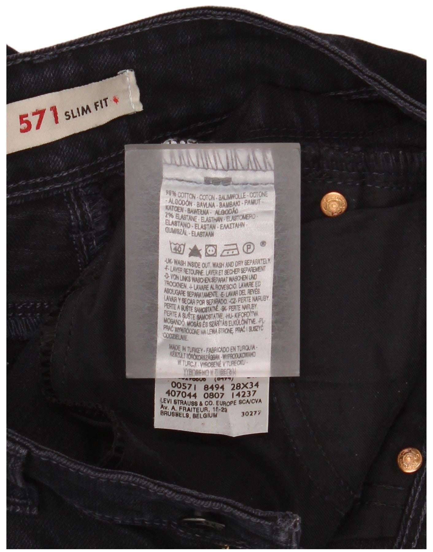 - KI-Beschreibung: Diese Slim-Jeans für Damen von Levi's ist aus schwarzem Stretch-Denim gefertigt. Die Stoffmischung aus 98 Prozent Baumwolle und 2 Prozent Elasthan sorgt für Komfort und Flexibilität. Sie verfügen über einen klassischen Reißverschluss und praktische Taschen. Das 571 Slim Fit-Design bietet eine moderne Silhouette. Diese Jeans bieten einen eleganten, vielseitigen Look für den Alltag.