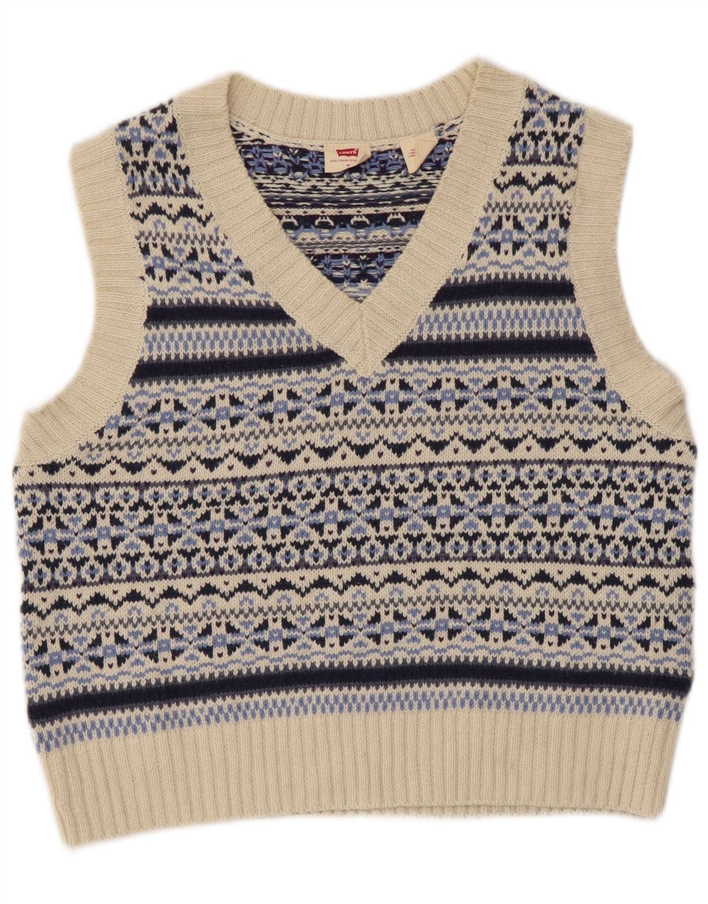 Levi's Damen Crop Vest Tank Top UK 12 Mittelblaue Fair-Isle-Baumwolle