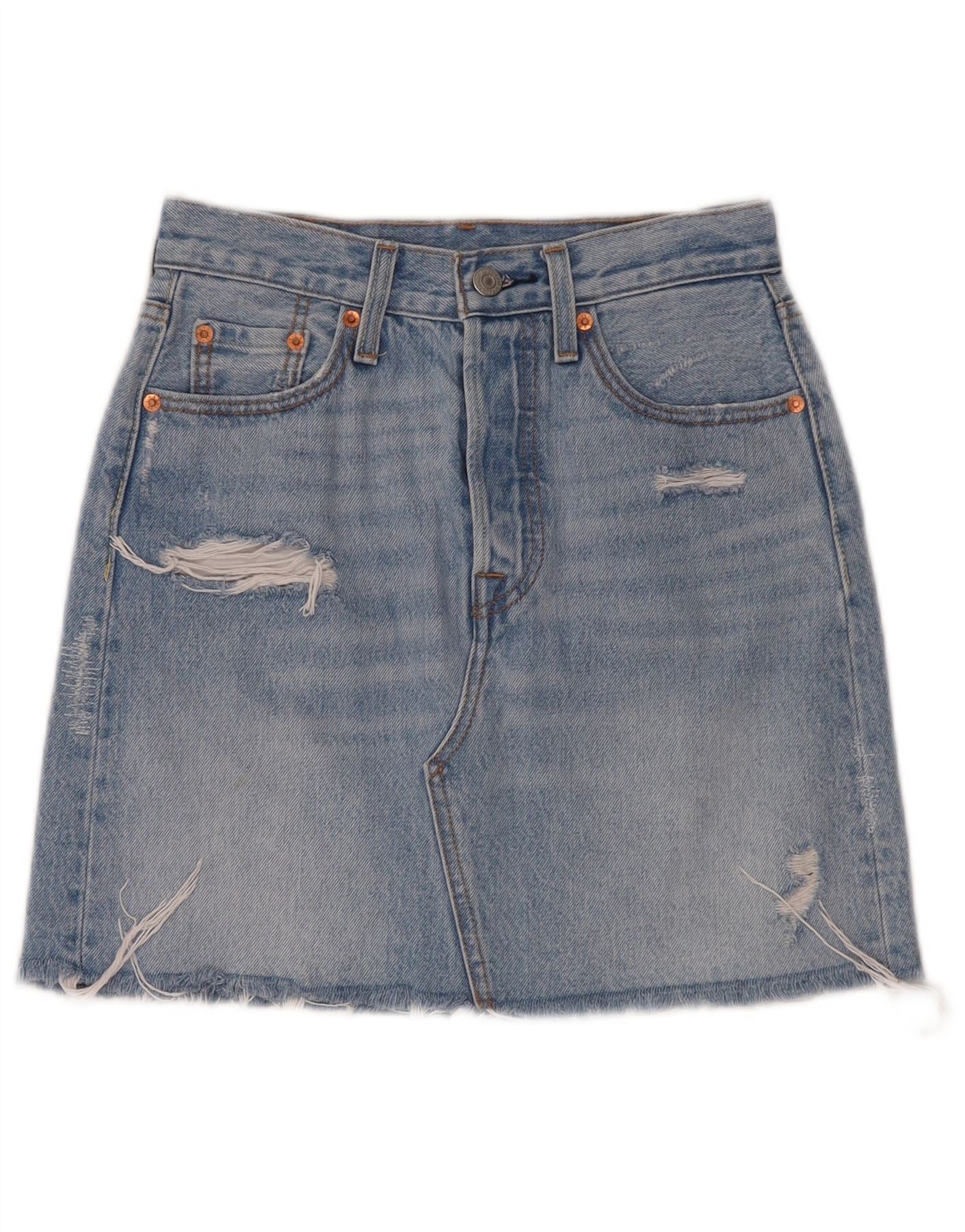 LEVI'S Damen Distressed Denim Rock W25 XS Blaue Baumwolle