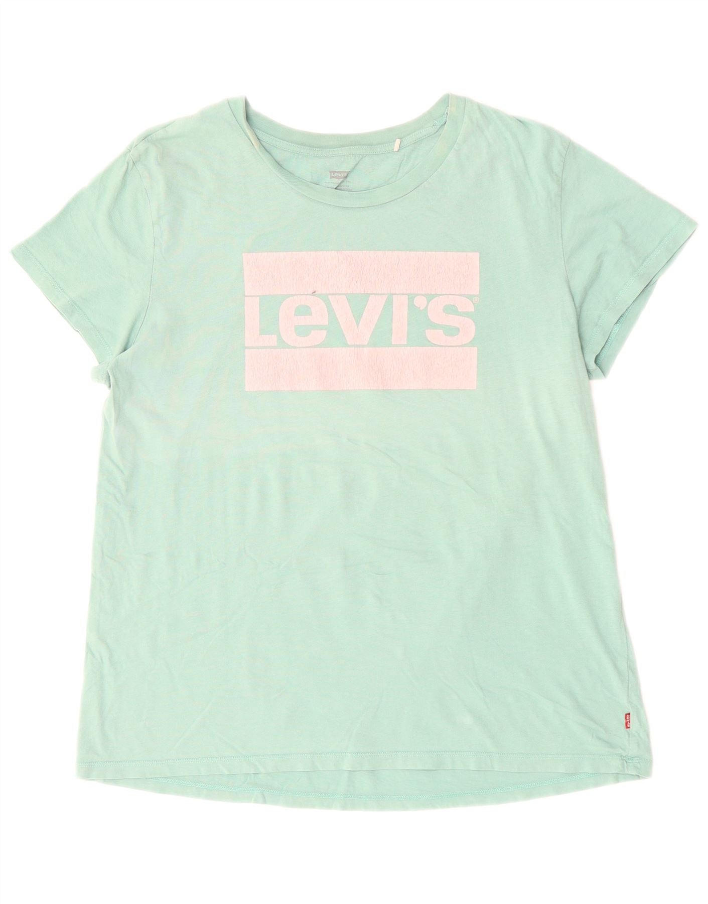 LEVI'S Damen Grafik-T-Shirt-Oberteil UK 16 Large Türkis Baumwolle