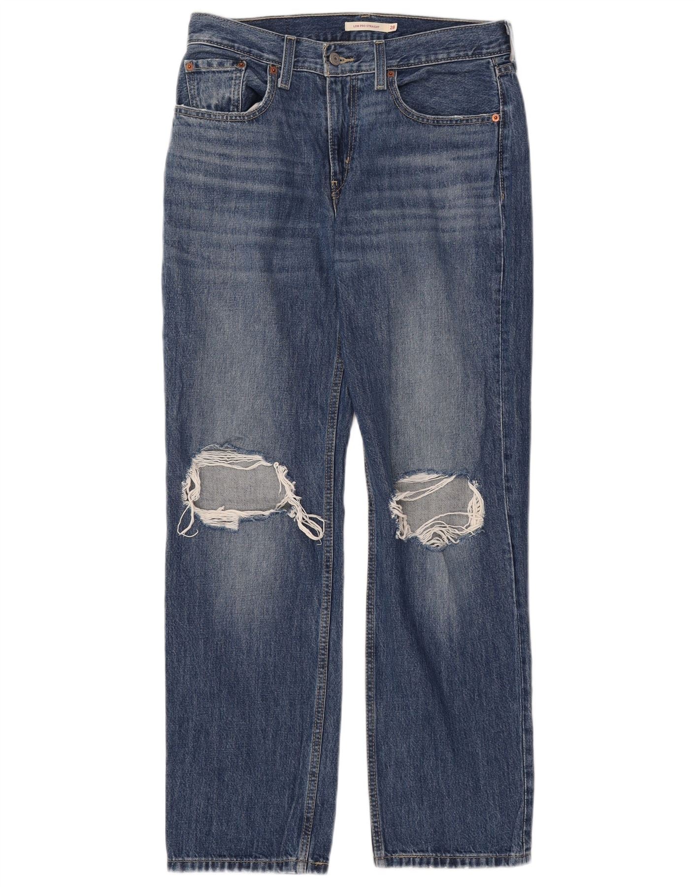 LEVI'S Damen Low Pro Distressed Straight Jeans W28 L31 Blaue Baumwolle