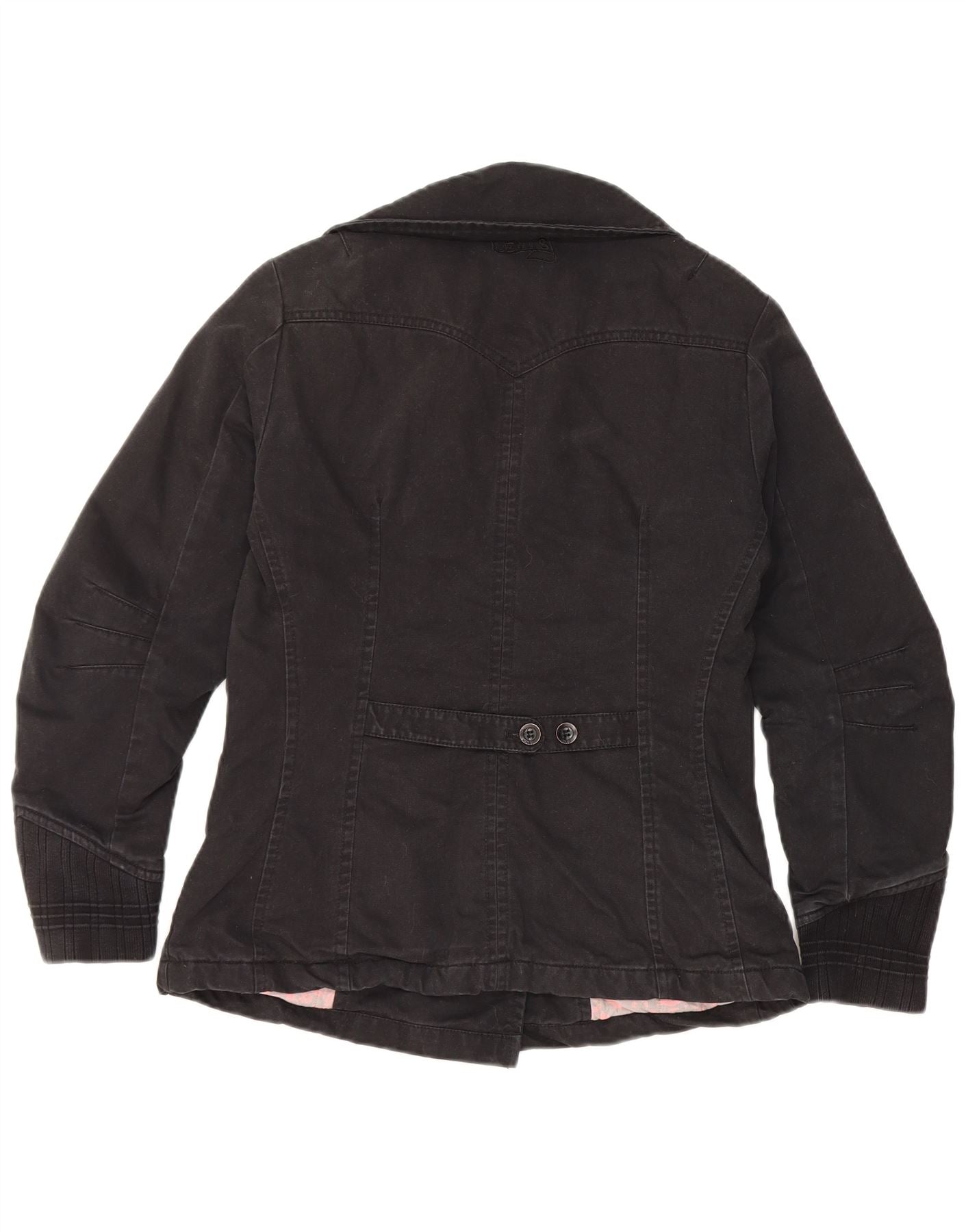 LEVI'S Damen Pea Coat UK 10 Small Schwarze Baumwolle