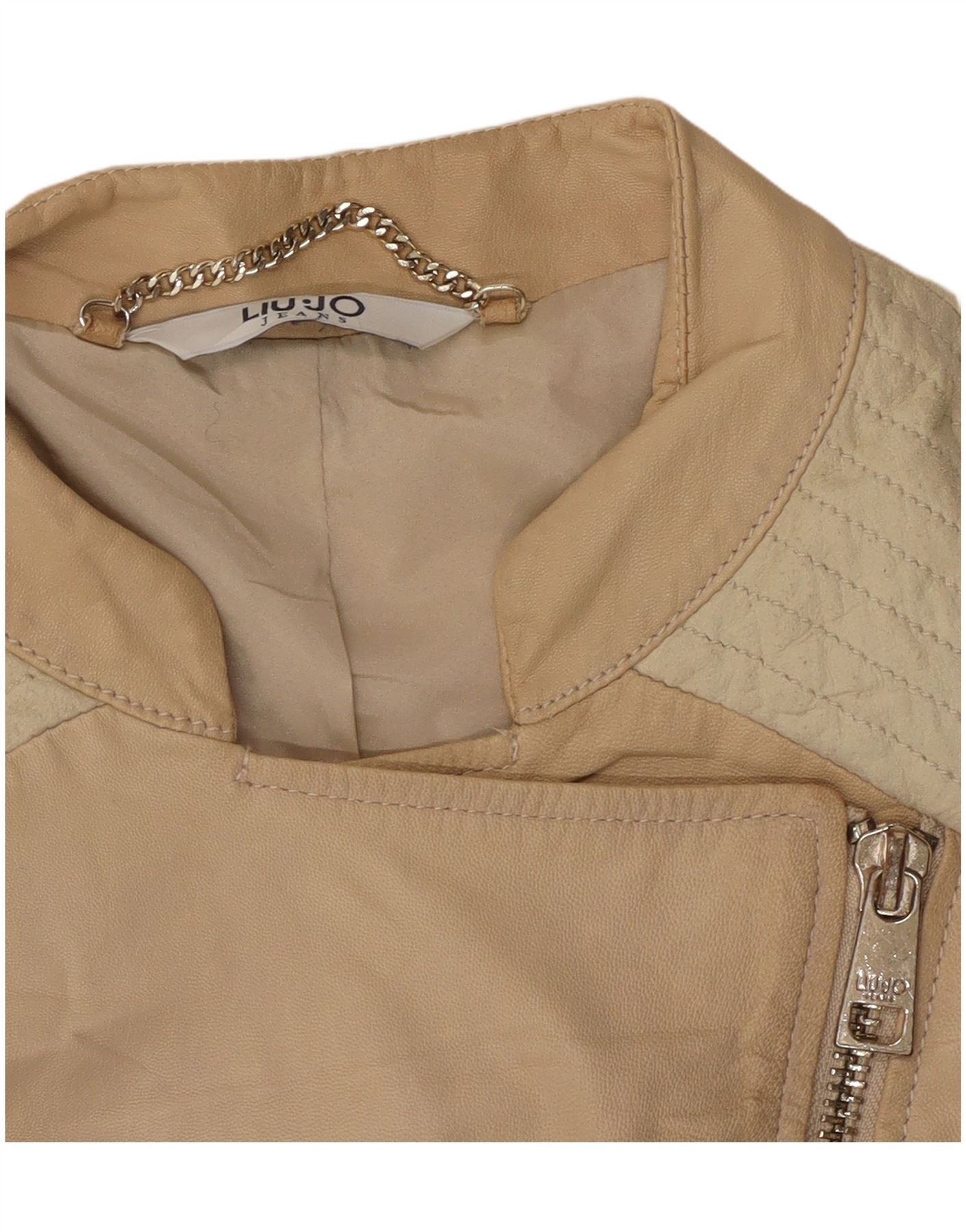 Liu Jo Damen Crop Bikerjacke IT 42 Mittelbeigefarbenes Farbblockleder