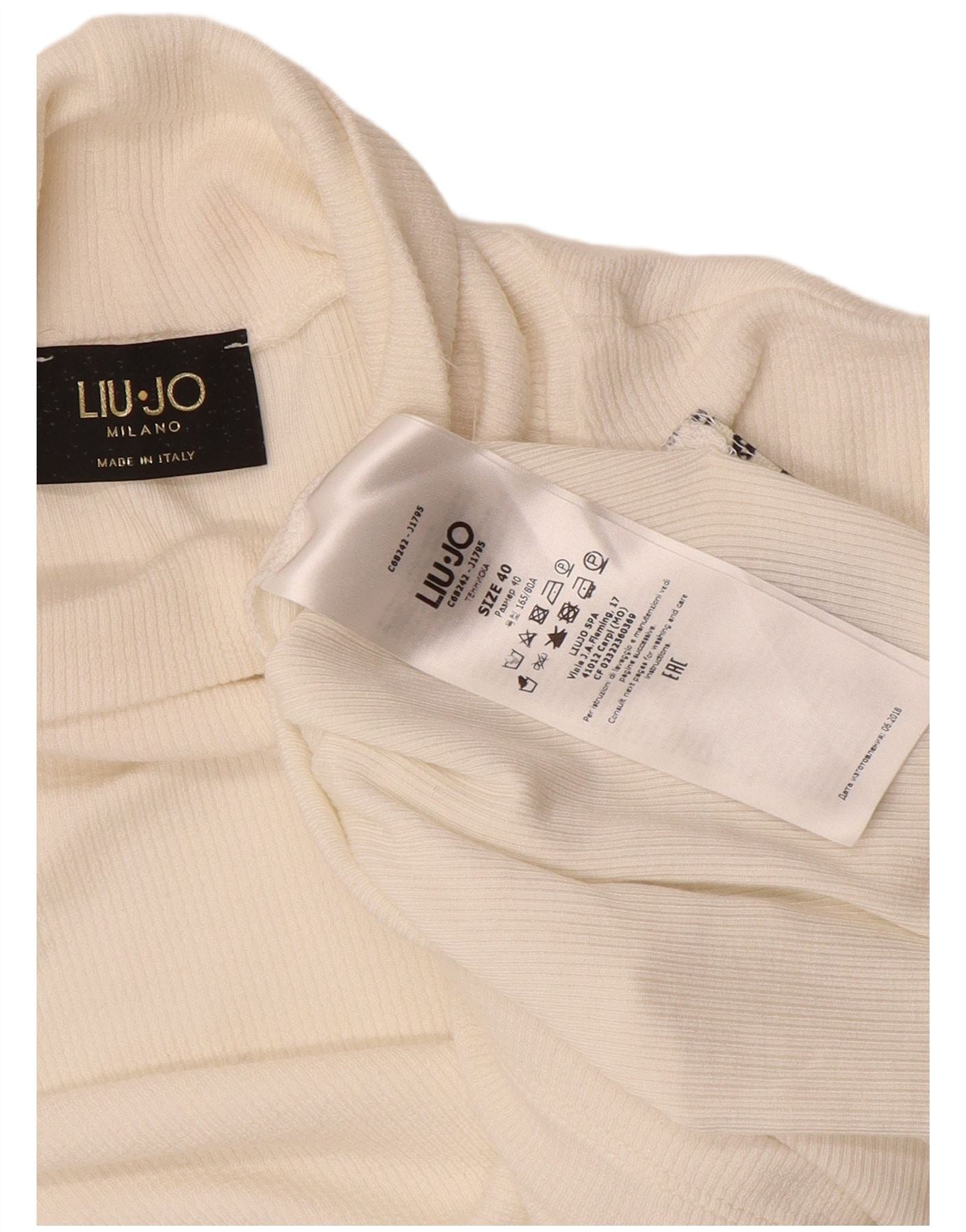 - AI Description: This Liu Jo womens long sleeve top is crafted from soft off white viscose knit. It features a sophisticated roll neck and long sleeves. The regular fit ensures comfortable wear. Subtle button accents add a refined touch. Its pullover design offers effortless style for a classic look.