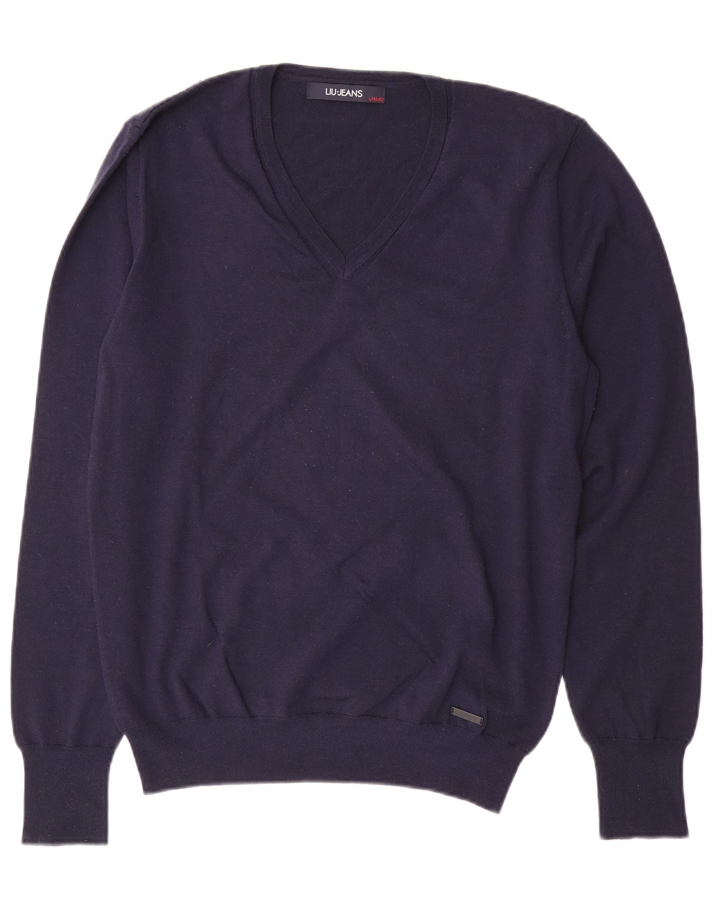 LIU JO Damen Pullover mit V-Ausschnitt UK 18 XL Marineblaue Wolle