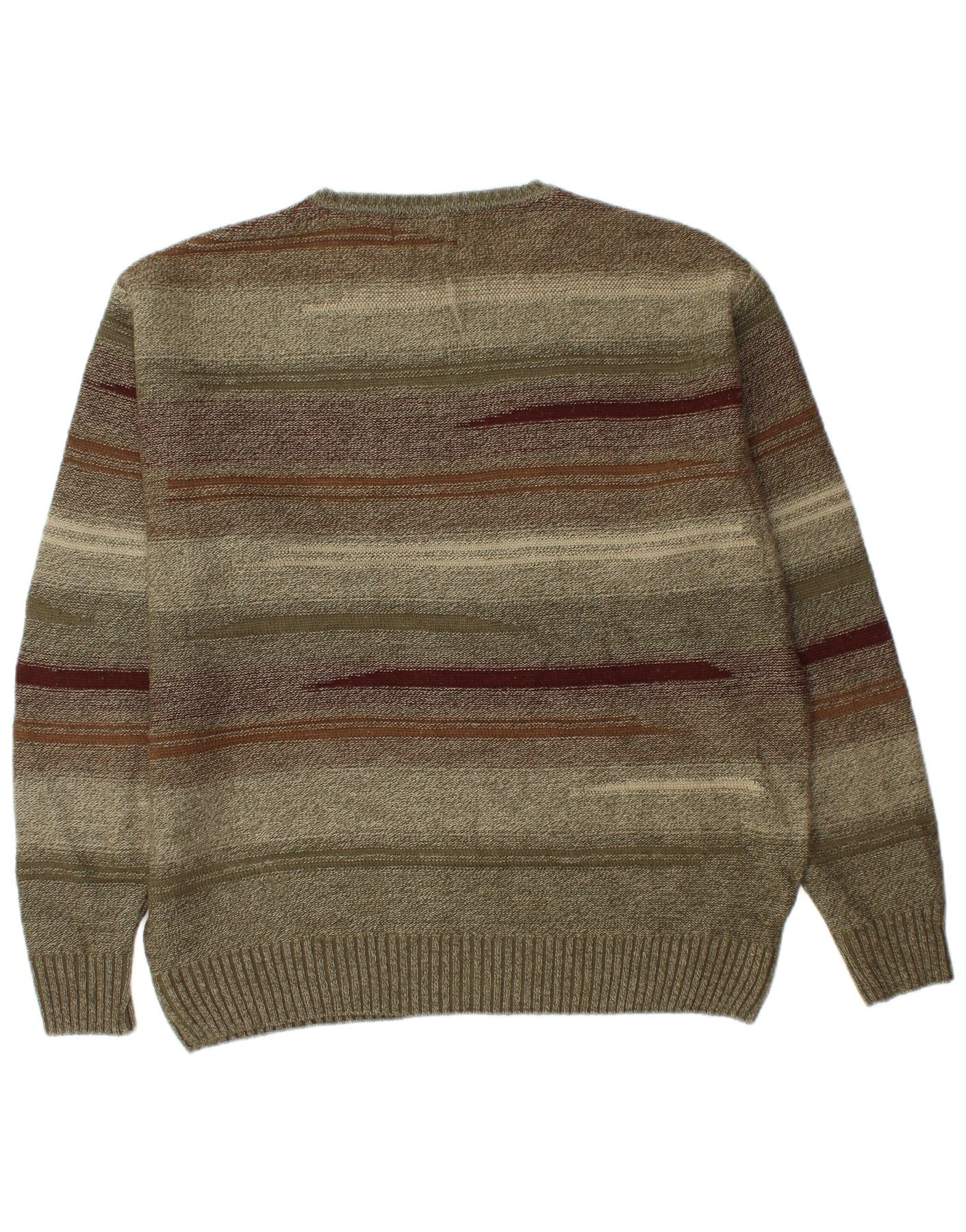 LONDON FOG Herren-Pullover mit Rundhalsausschnitt, Mittelkhaki, gestreift, Acryl