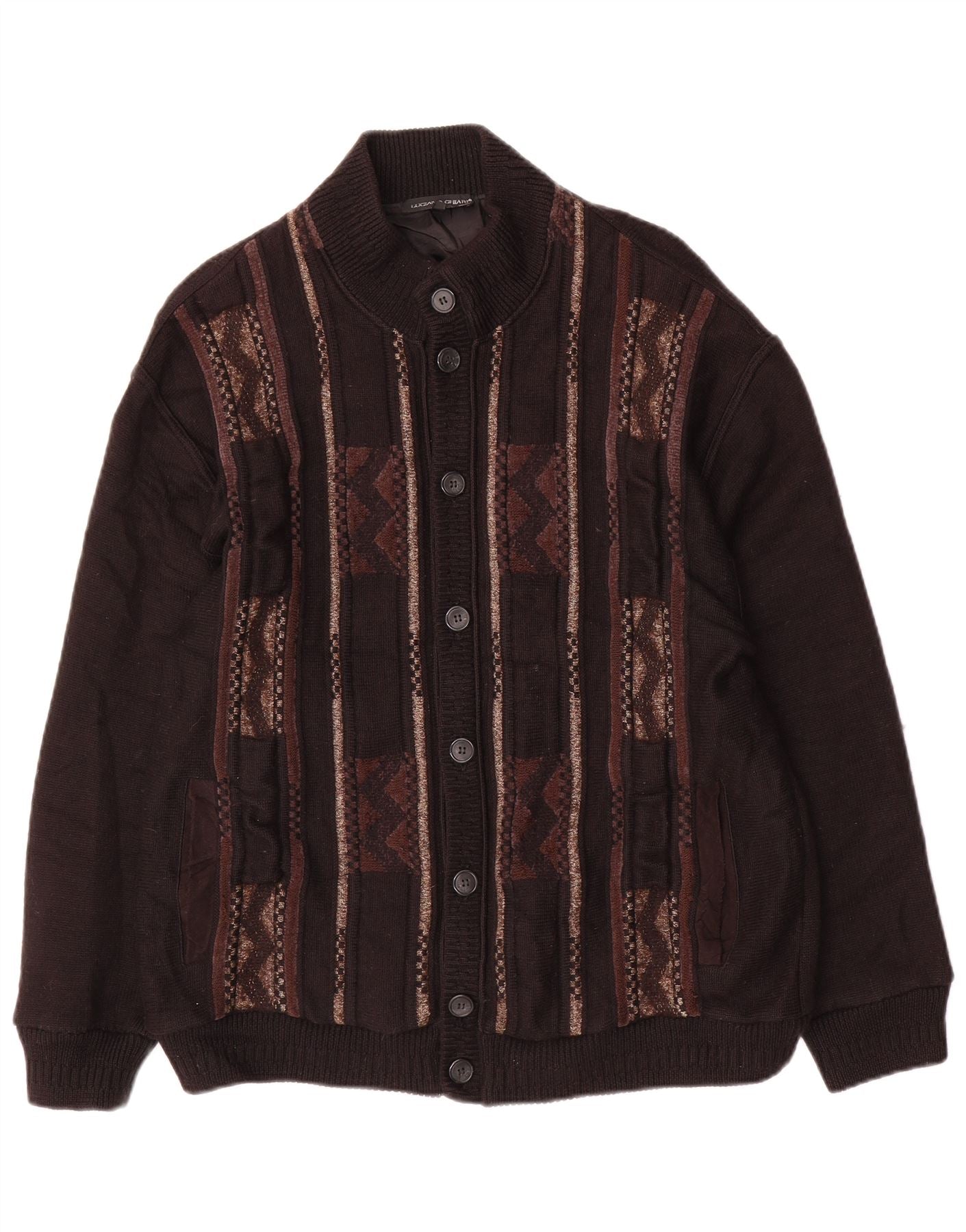 LUCIANO CHIARI Herren-Cardigan-Pullover IT 52 Große schwarze geometrische Wolle
