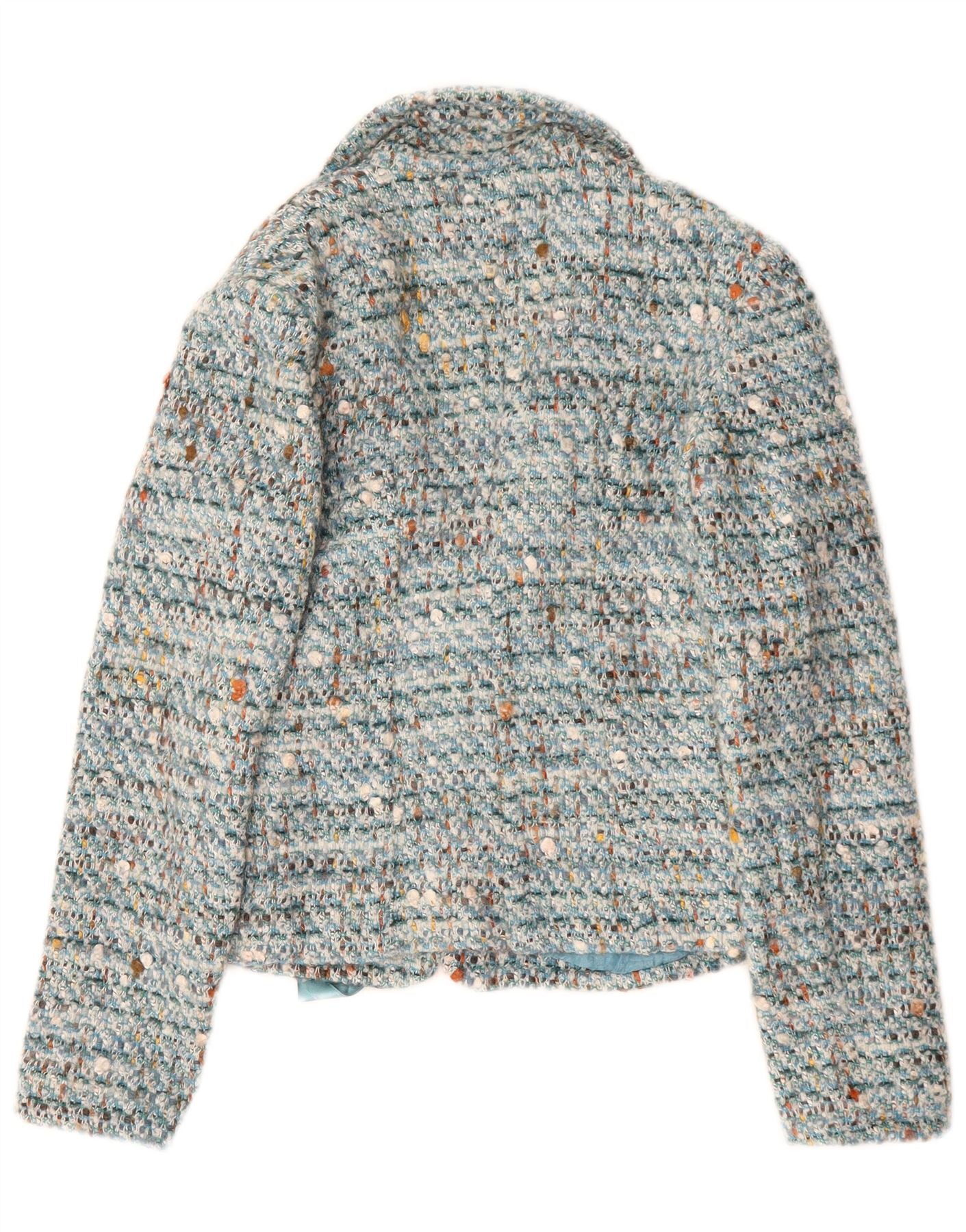 - KI-Beschreibung: Diese Damenjacke von Luisa Spagnoli ist aus luxuriösem türkisfarbenem Wolltweed gefertigt. Es verfügt über ein gesprenkeltes Muster mit dezenten mehrfarbigen Akzenten. Der Kragenausschnitt und die langen Ärmel sorgen für eine klassische Struktur. Ein zarter Bindeverschluss mit Schleifendetail betont die Taille. Diese Jacke mit normaler Passform ist vollständig gefüttert und bietet Komfort und ein raffiniertes Finish.
