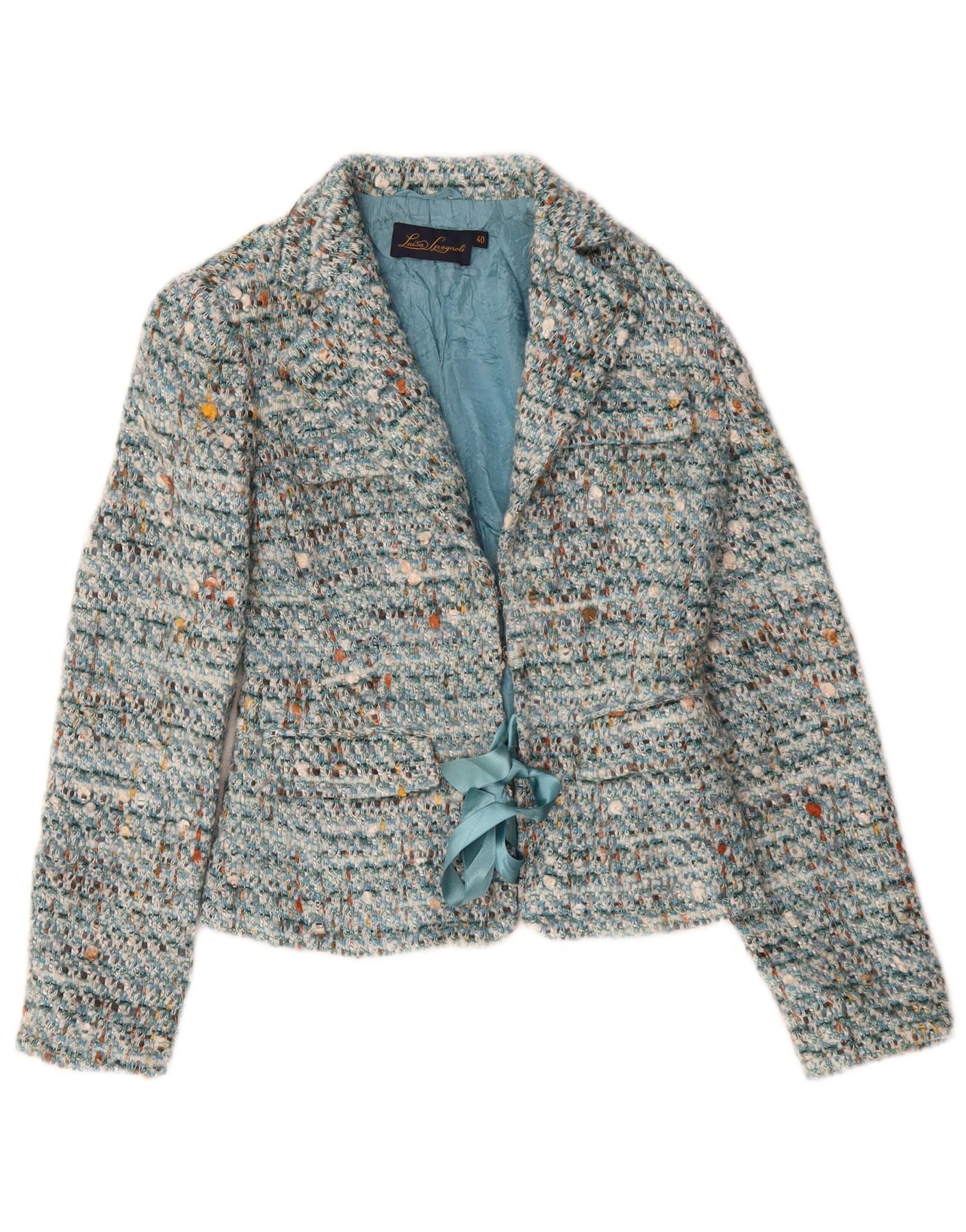 Luisa Spagnoli Damen-Blazer mit Vorderbindung, Größe 40, klein, blau meliert