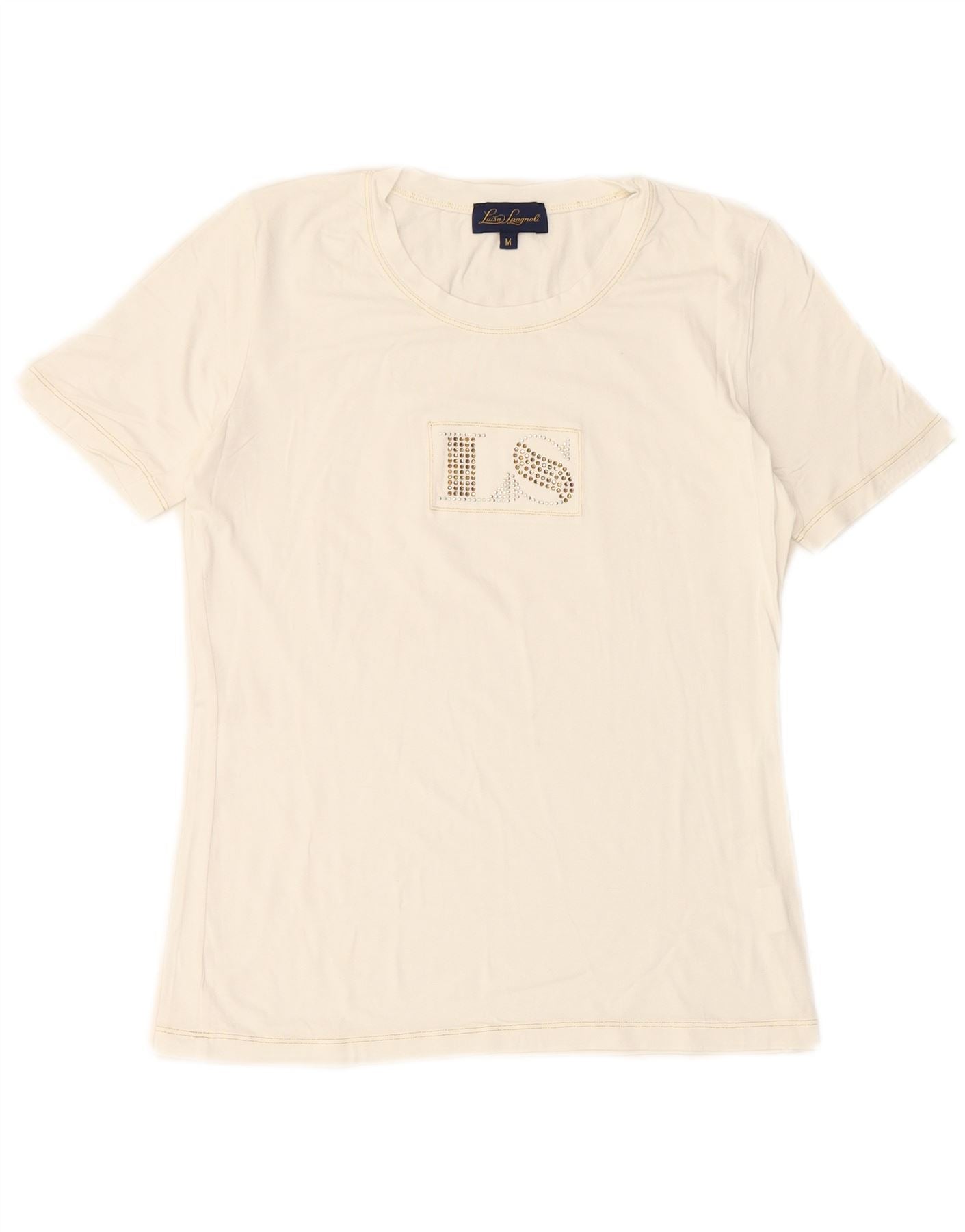 LUISA SPAGNOLI Damen Grafik-T-Shirt Top UK 14 Mittelweiße Viskose