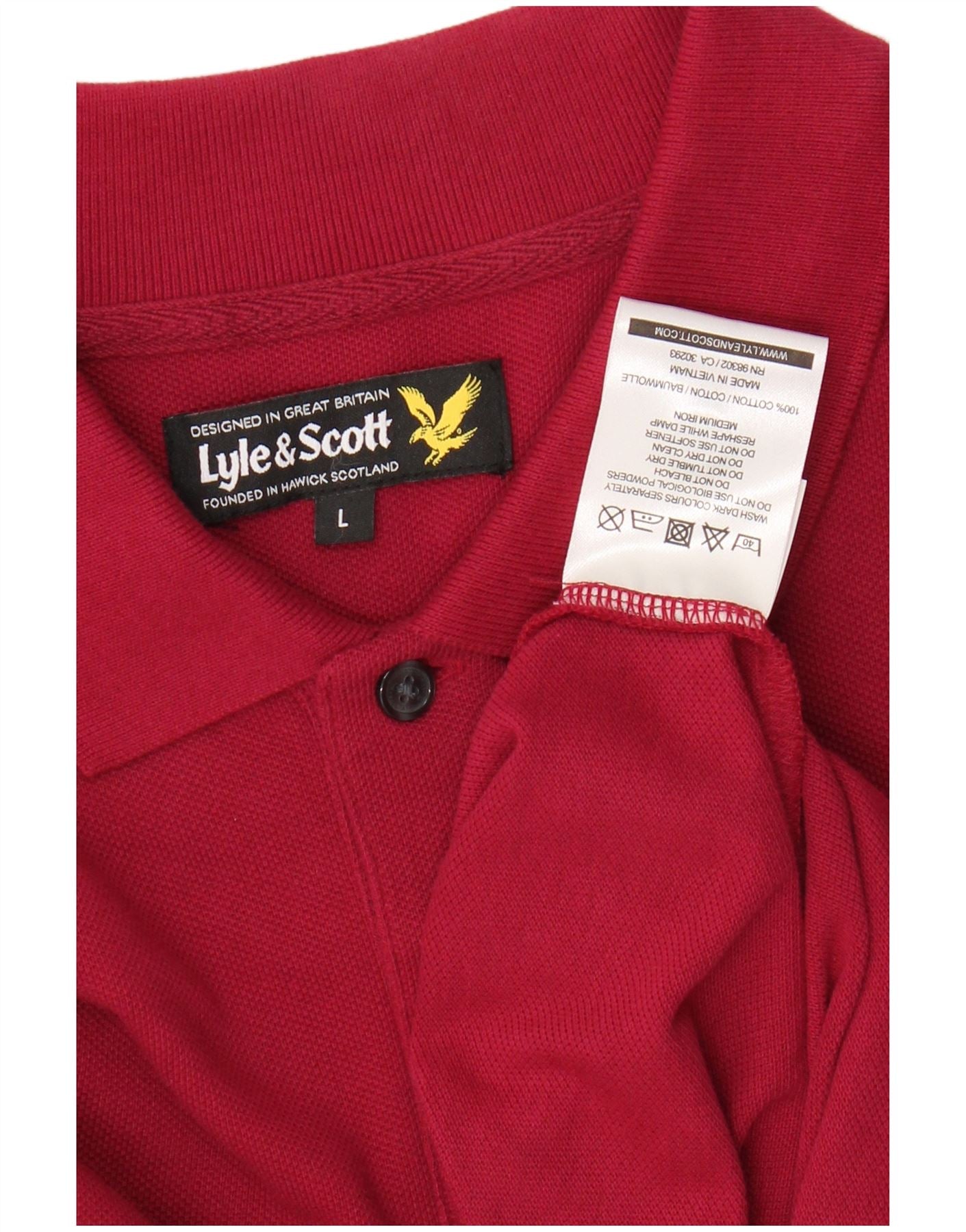 - AI Description: This Lyle & Scott mens polo shirt is crafted from soft red 100 percent cotton jersey. It features a classic collared neckline and a neat button closure. Short sleeves and a regular fit ensure comfortable wear. The iconic embroidered logo adds a signature touch to this timeless design. Its plain texture and classic style make it a versatile wardrobe staple.