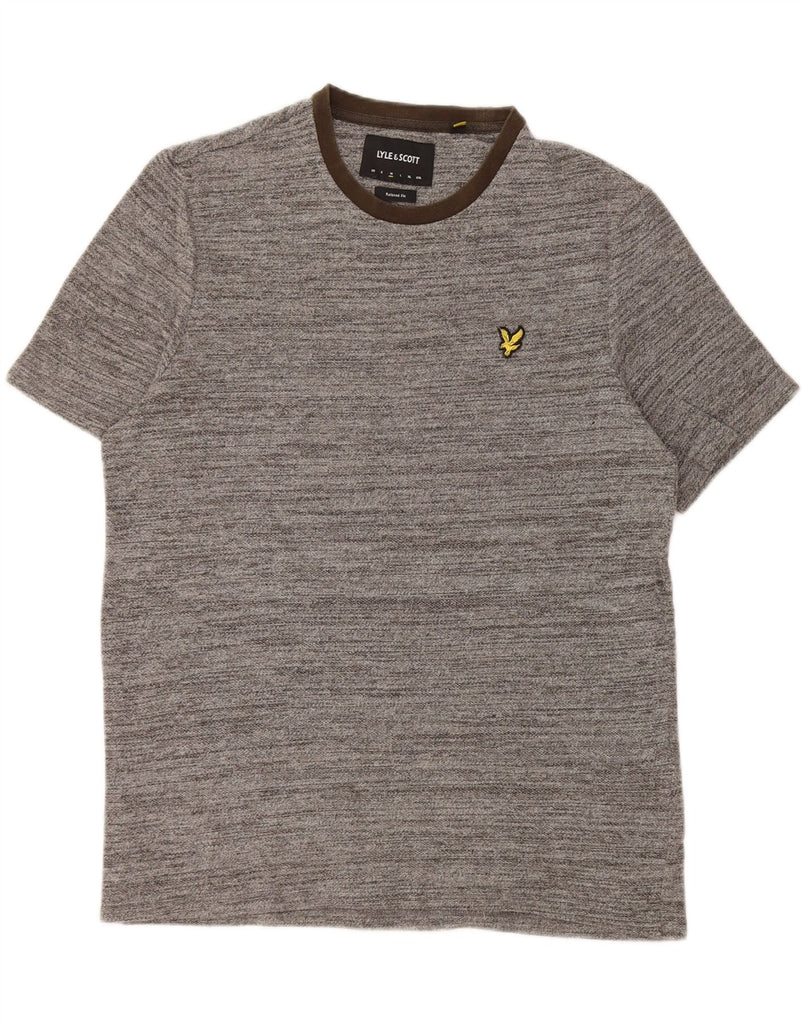 LYLE & SCOTT Mens Relaxed Fit T-Shirt Top Medium Grey Pinstripe Cotton