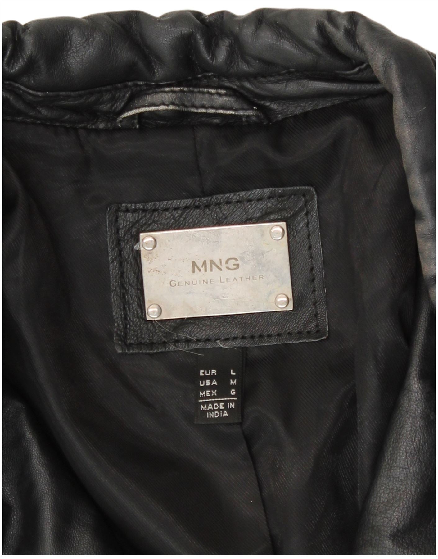 Mango Damen Leder Bikerjacke UK 16 Large Schwarzes Leder