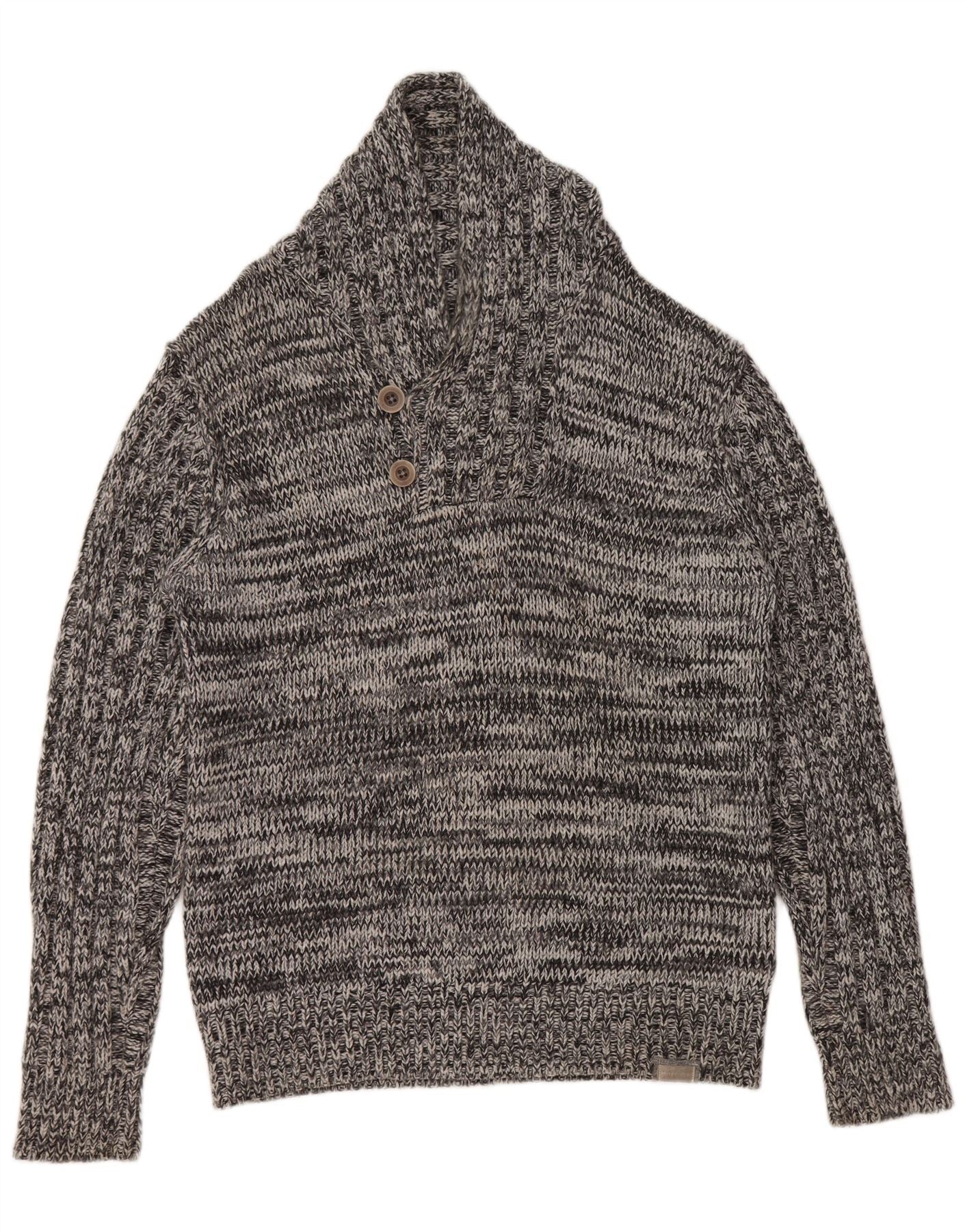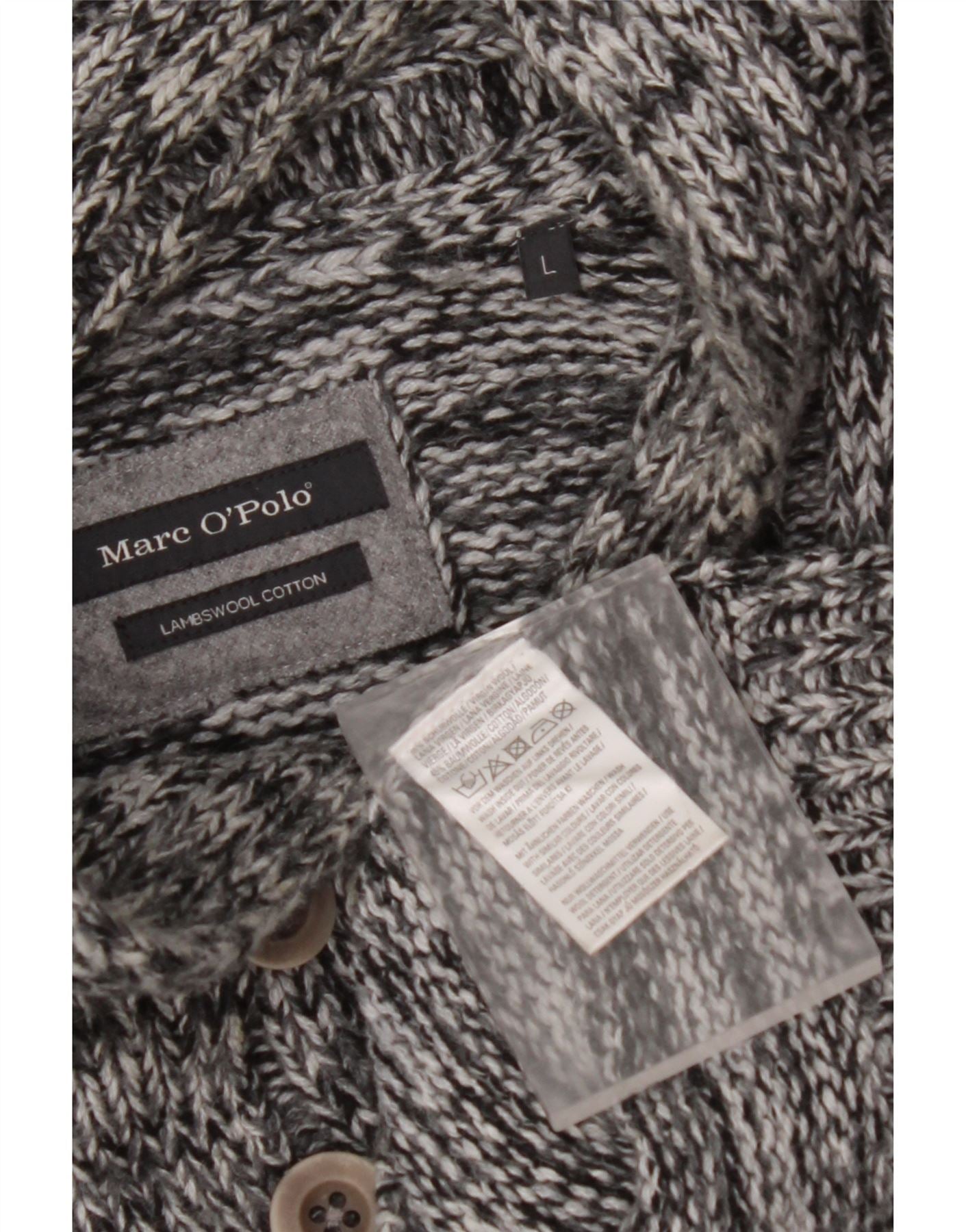 MARC O'POLO Herren-Pullover mit Schalkragen, groß, grau meliert, Lammwolle