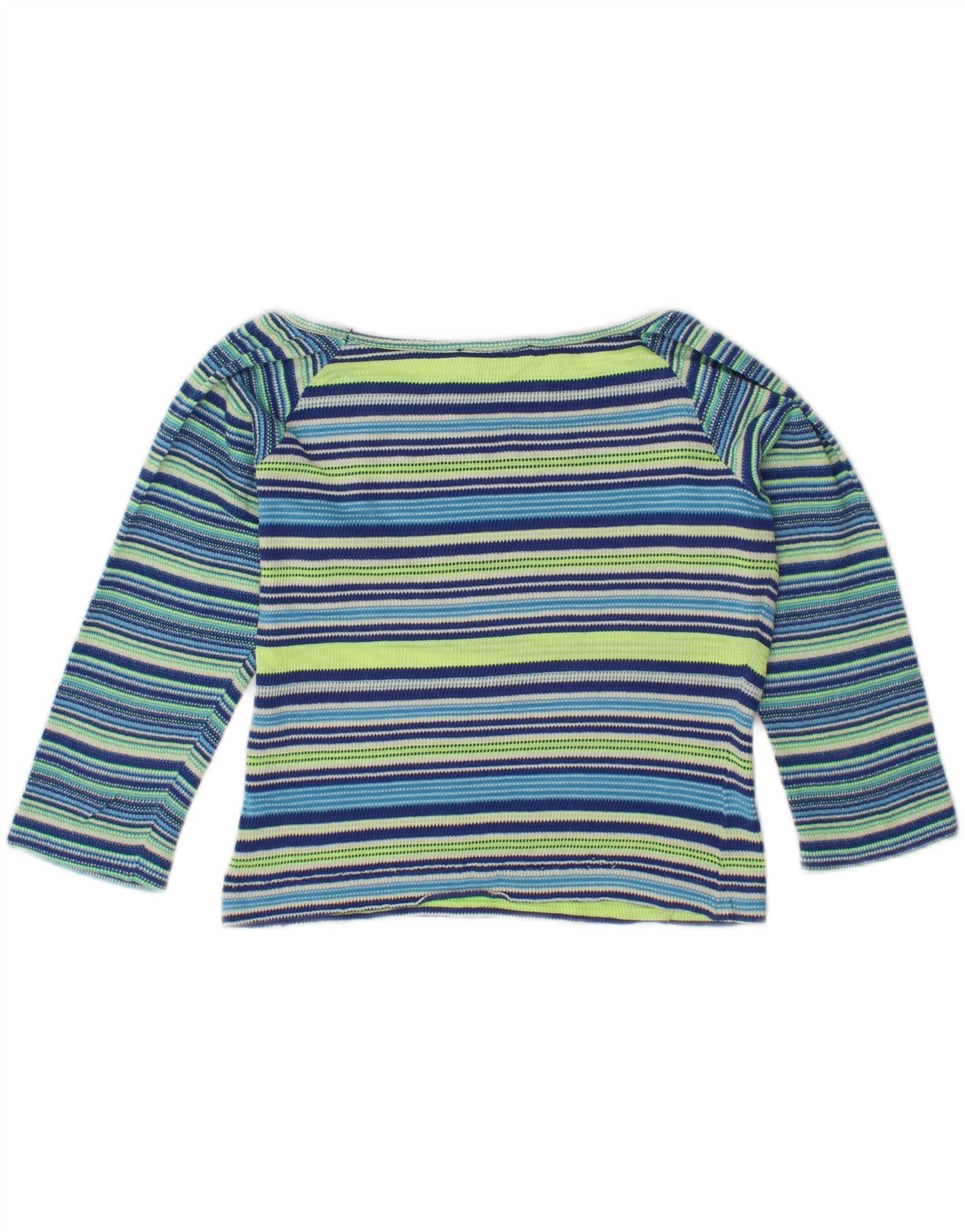 MARELLA Womens Crop Top 3/4 Sleeve UK 14 Large Multicoloured Striped