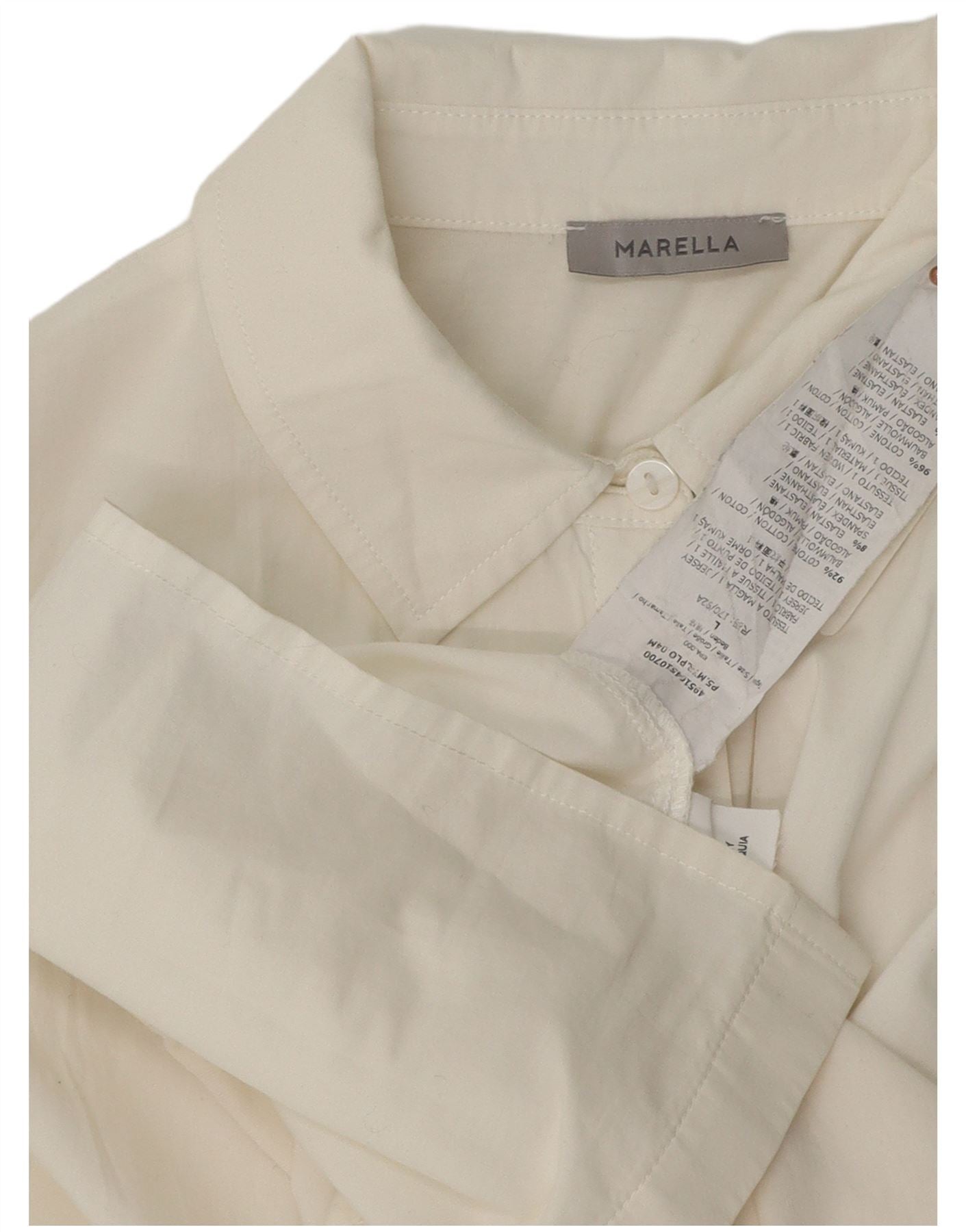 Marella Damen Longline-Hemdbluse UK 16 Large Off White Cotton