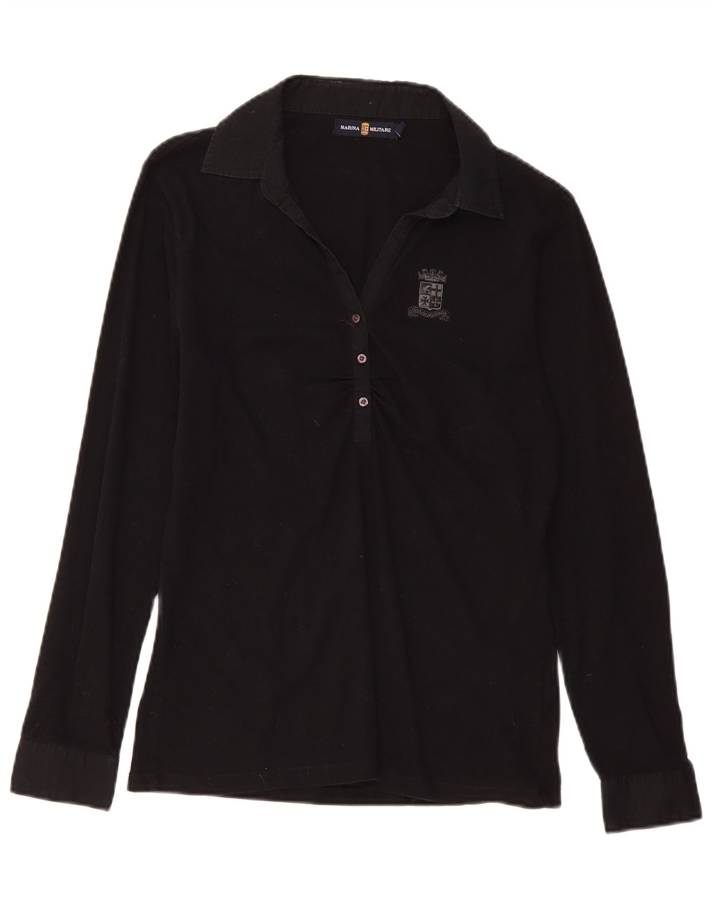 MARINA MILITARE Damen Langarm-Poloshirt UK 18 XL Schwarz Baumwolle