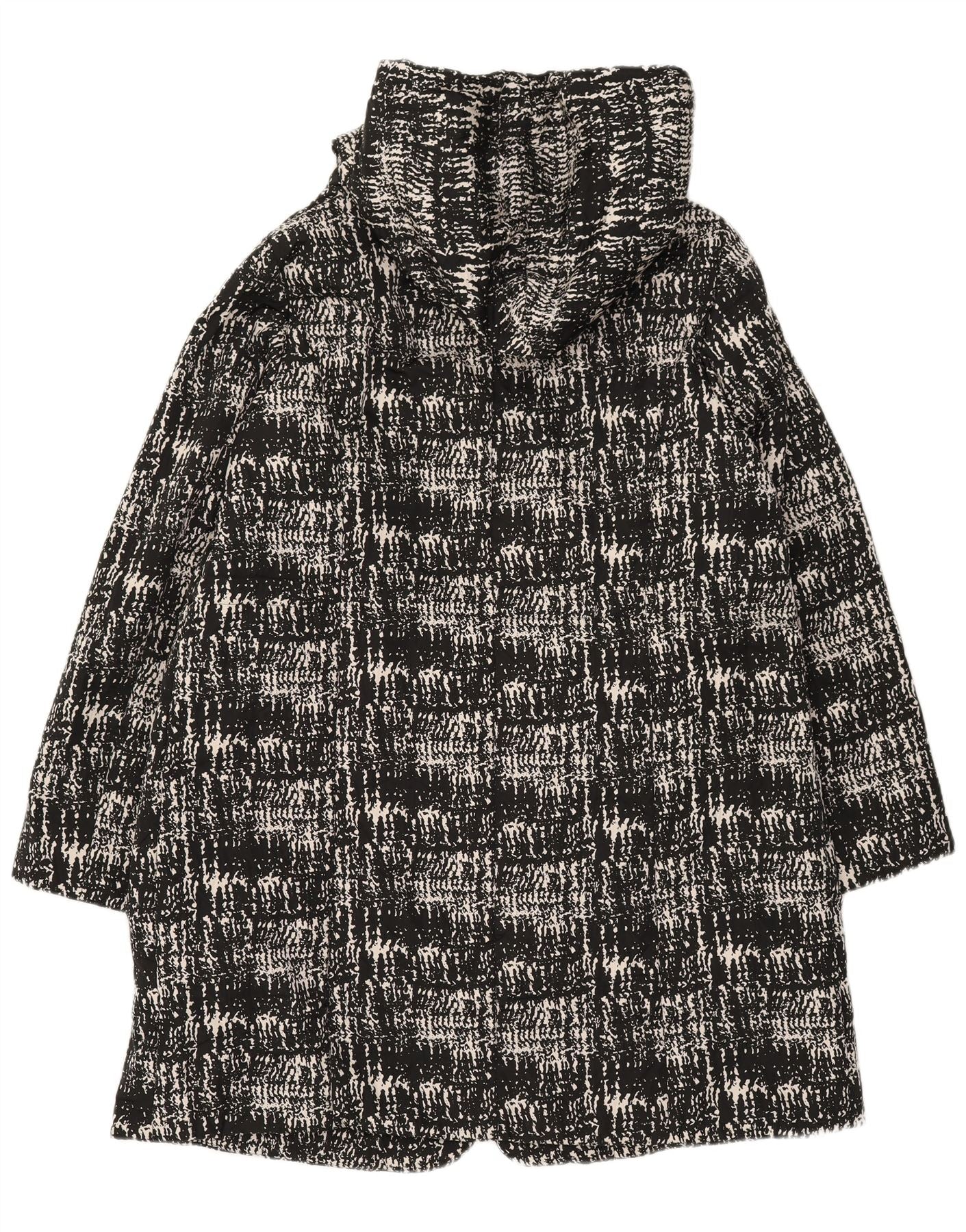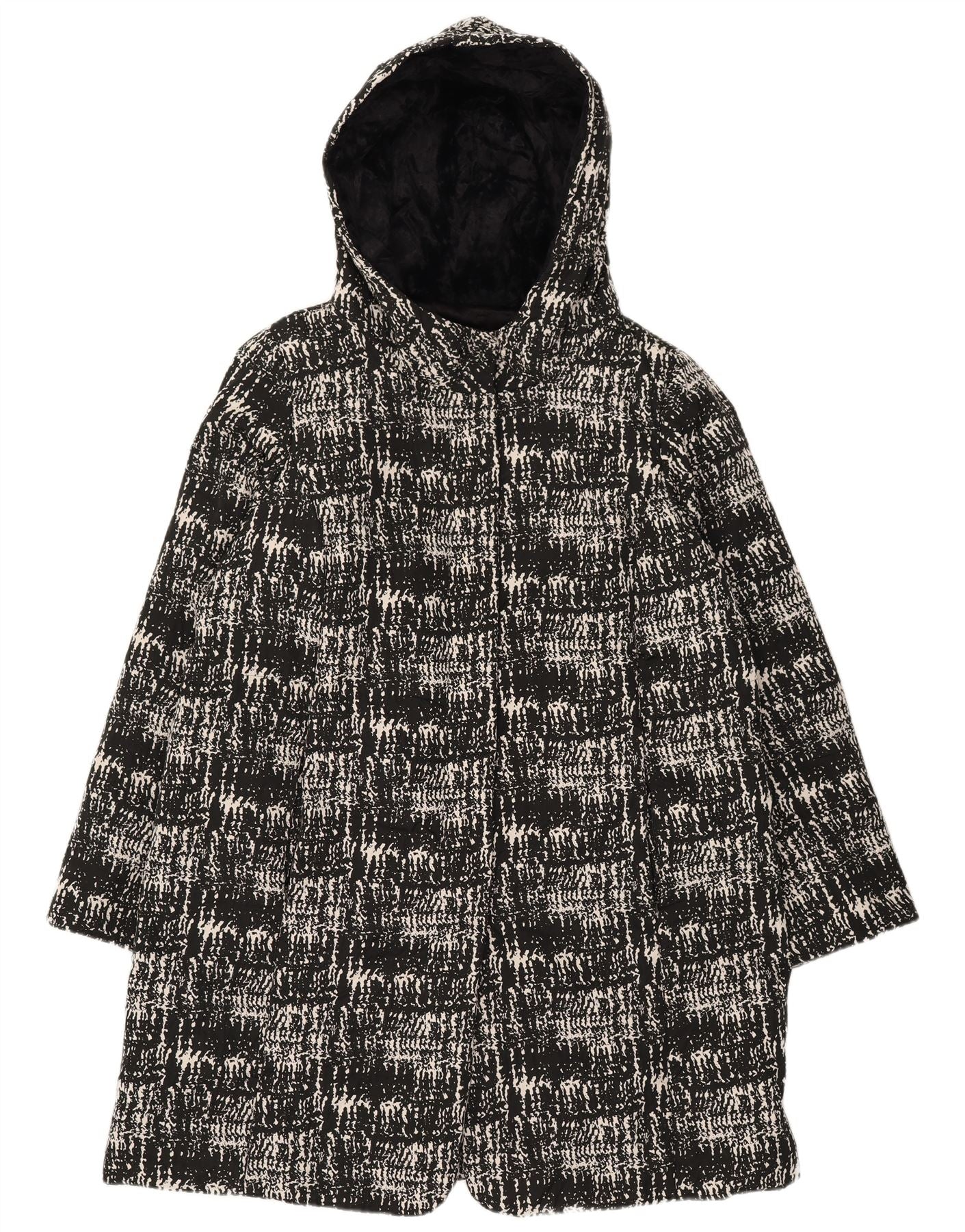 MARINA RINALDI Womens Abstract Pattern Hooded Overcoat Size 25 Large Black