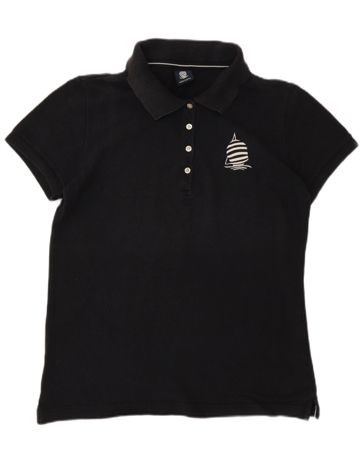 MARINA YACHTING Damen Poloshirt UK 14 Große schwarze Baumwolle