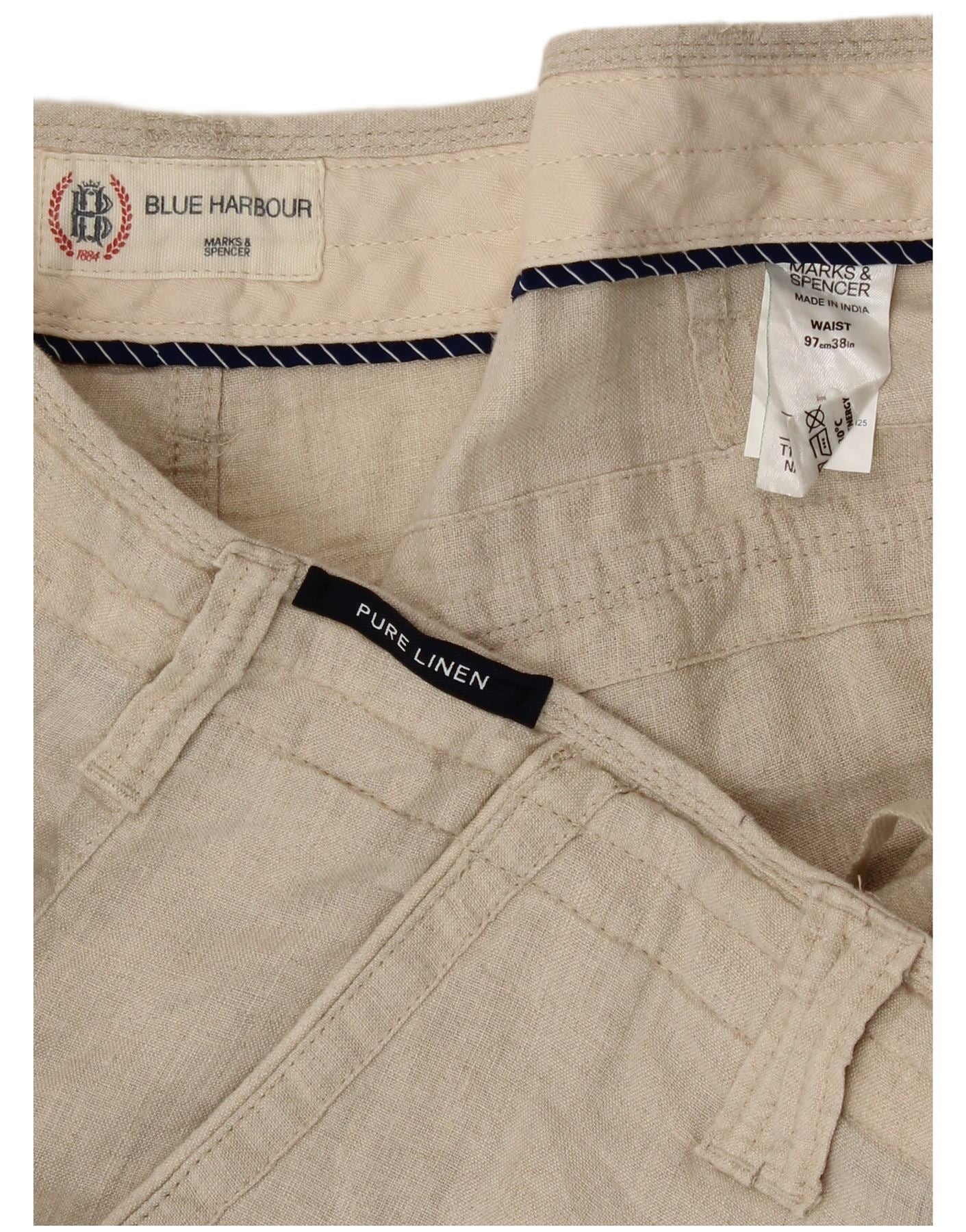 MARKS & SPENCER Mens Blue Harbour Chino Shorts W38 XL Beige Linen