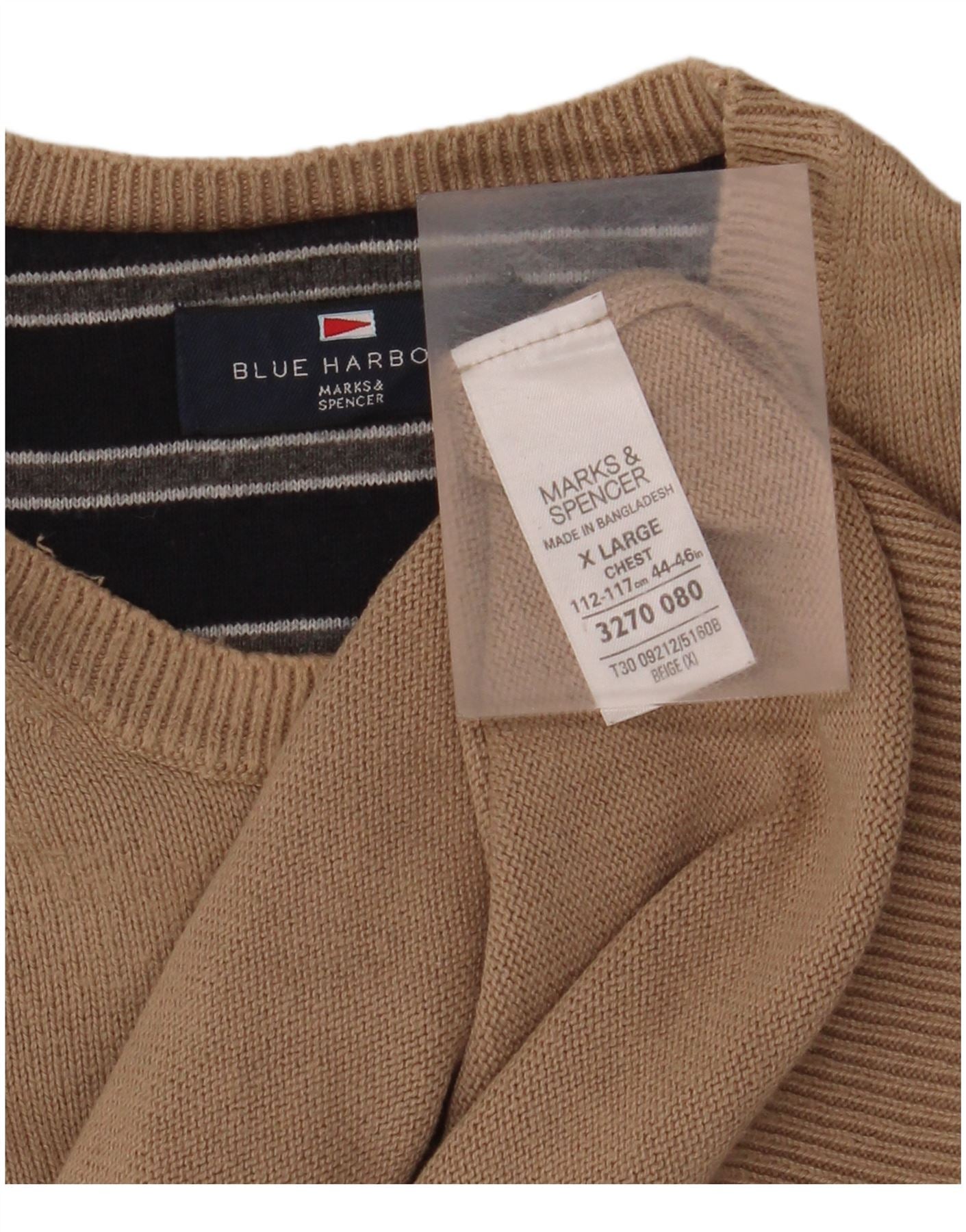MARKS & SPENCER Herren Blue Harbour Rundhalspullover Pullover XL Beige Baumwolle