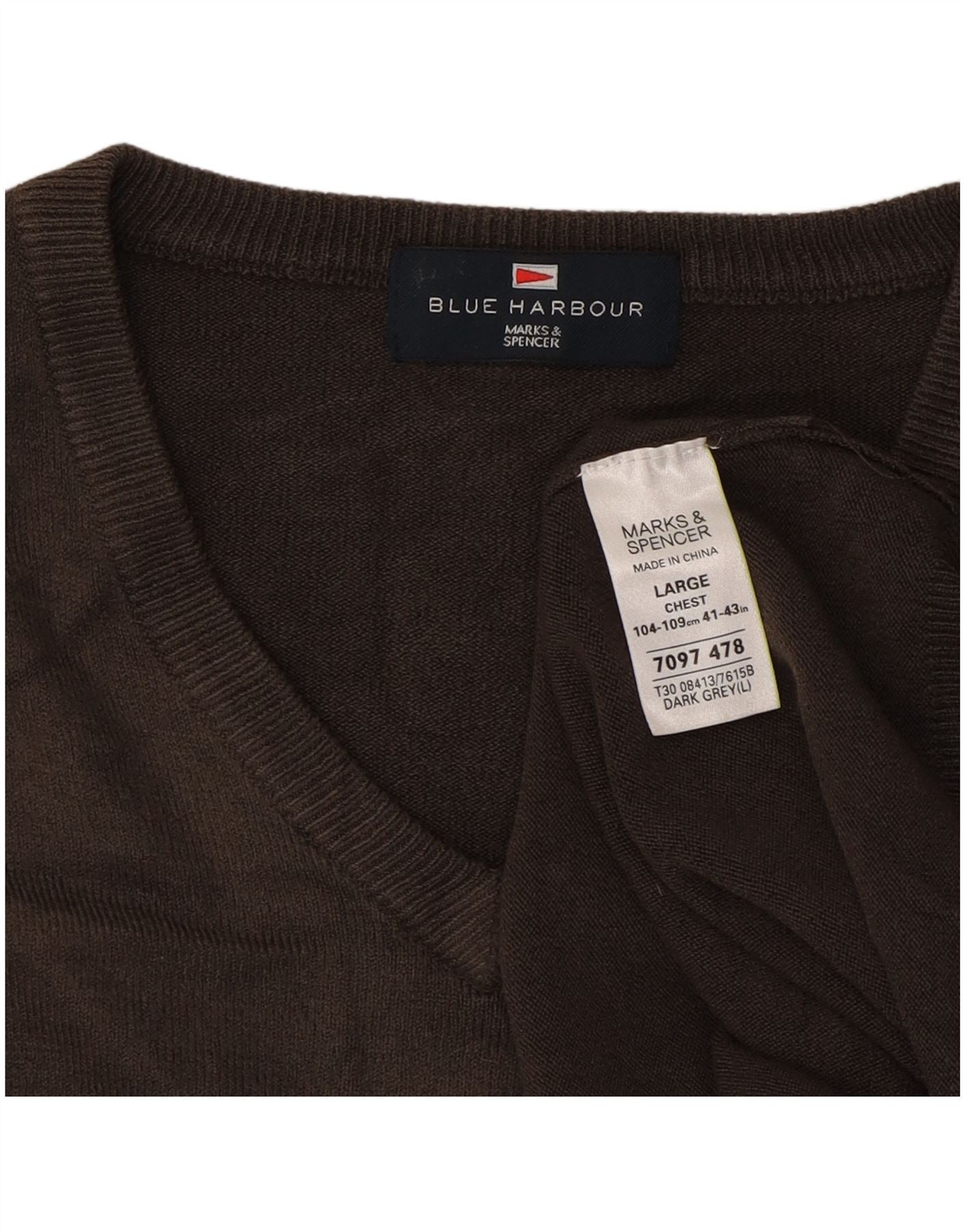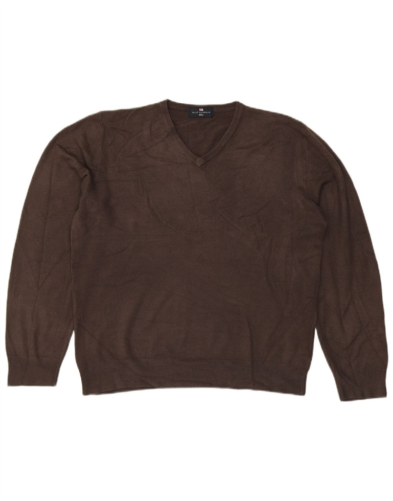 MARKS & SPENCER Mens Blue Harbour V-Neck Jumper Sweater Large Grey Acrylic