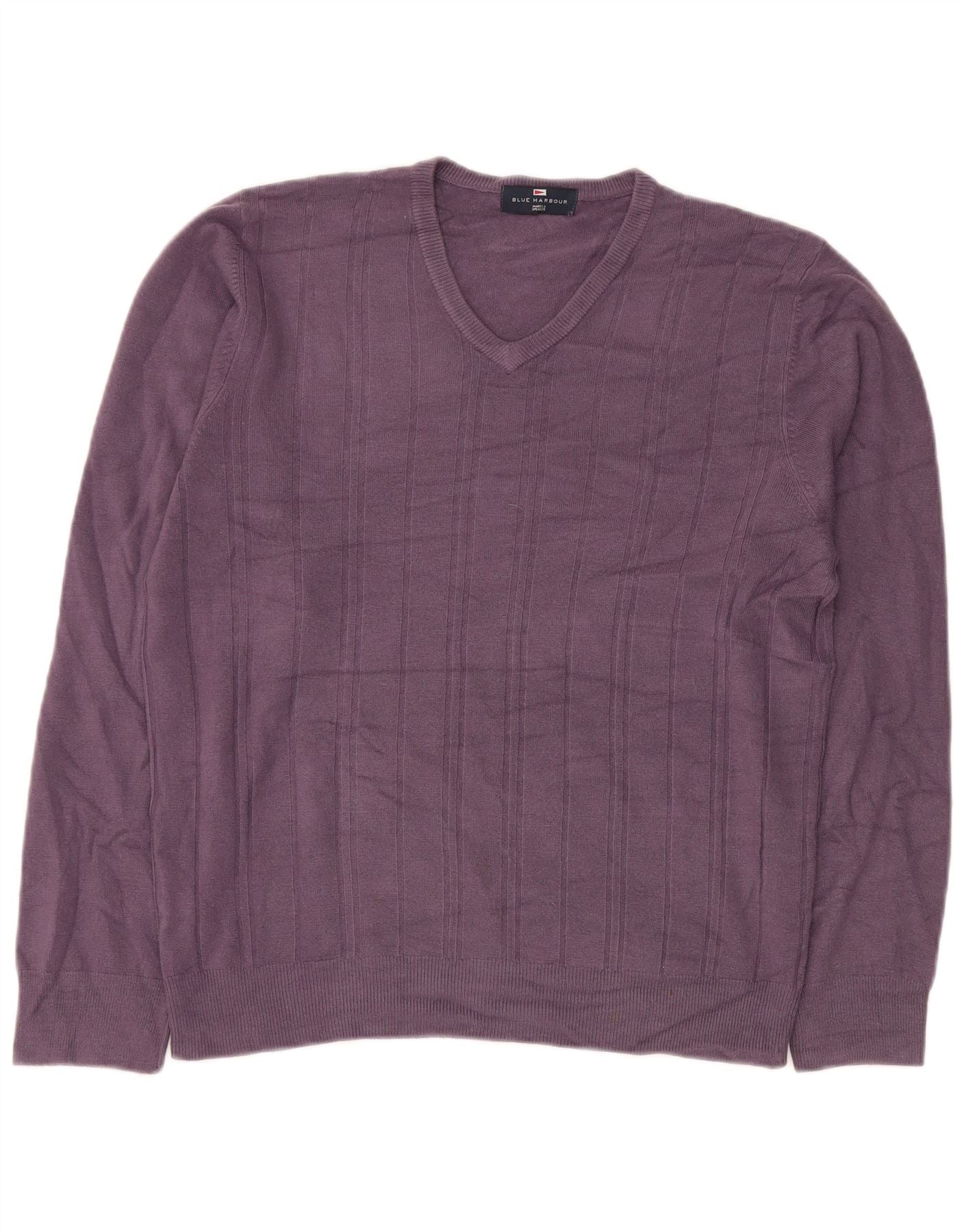 MARKS & SPENCER Herren Blauer Harbor-Pullover mit V-Ausschnitt Mittelviolett