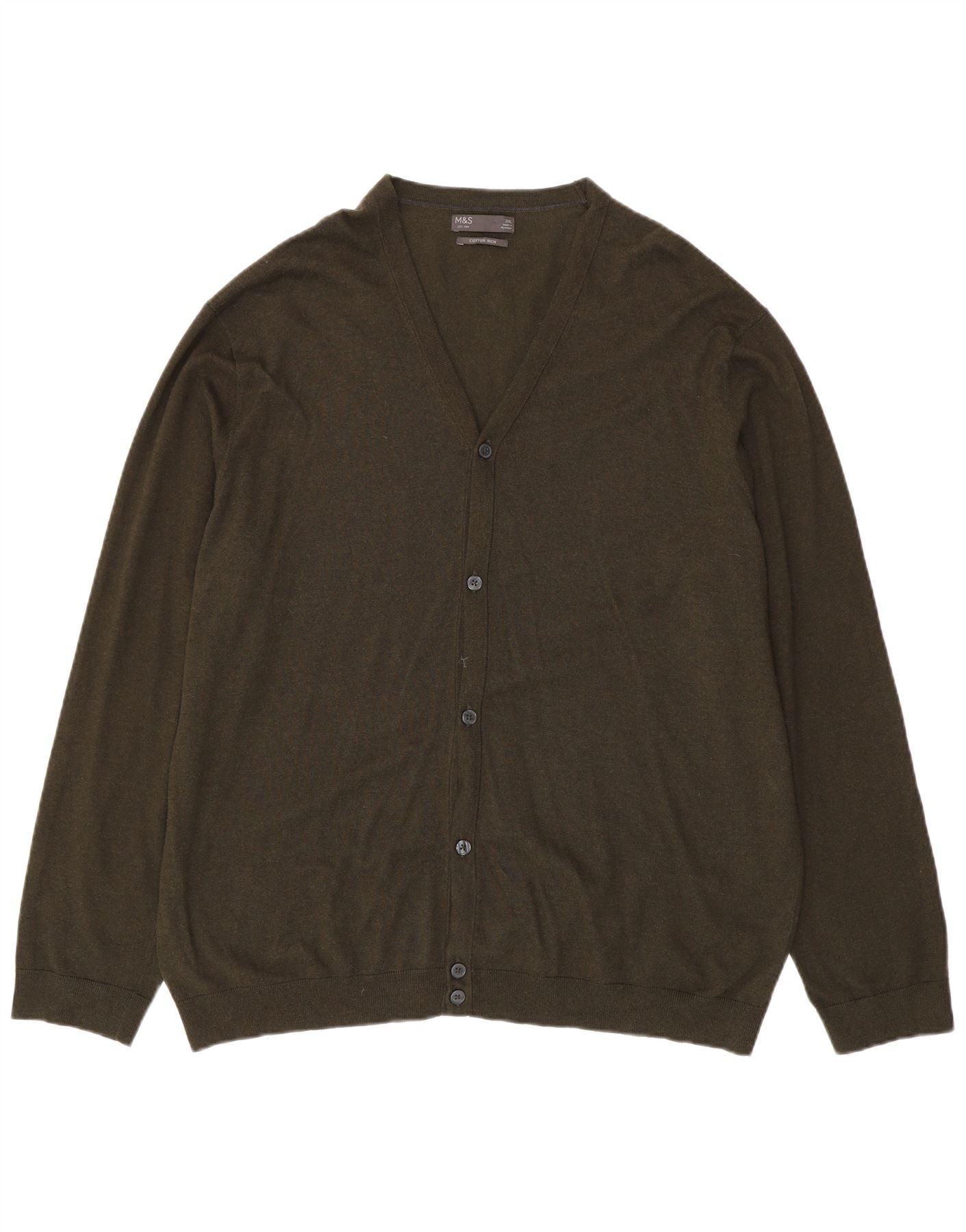 Marks & Spencer Herren Strickjacke 2XL Khaki Baumwolle