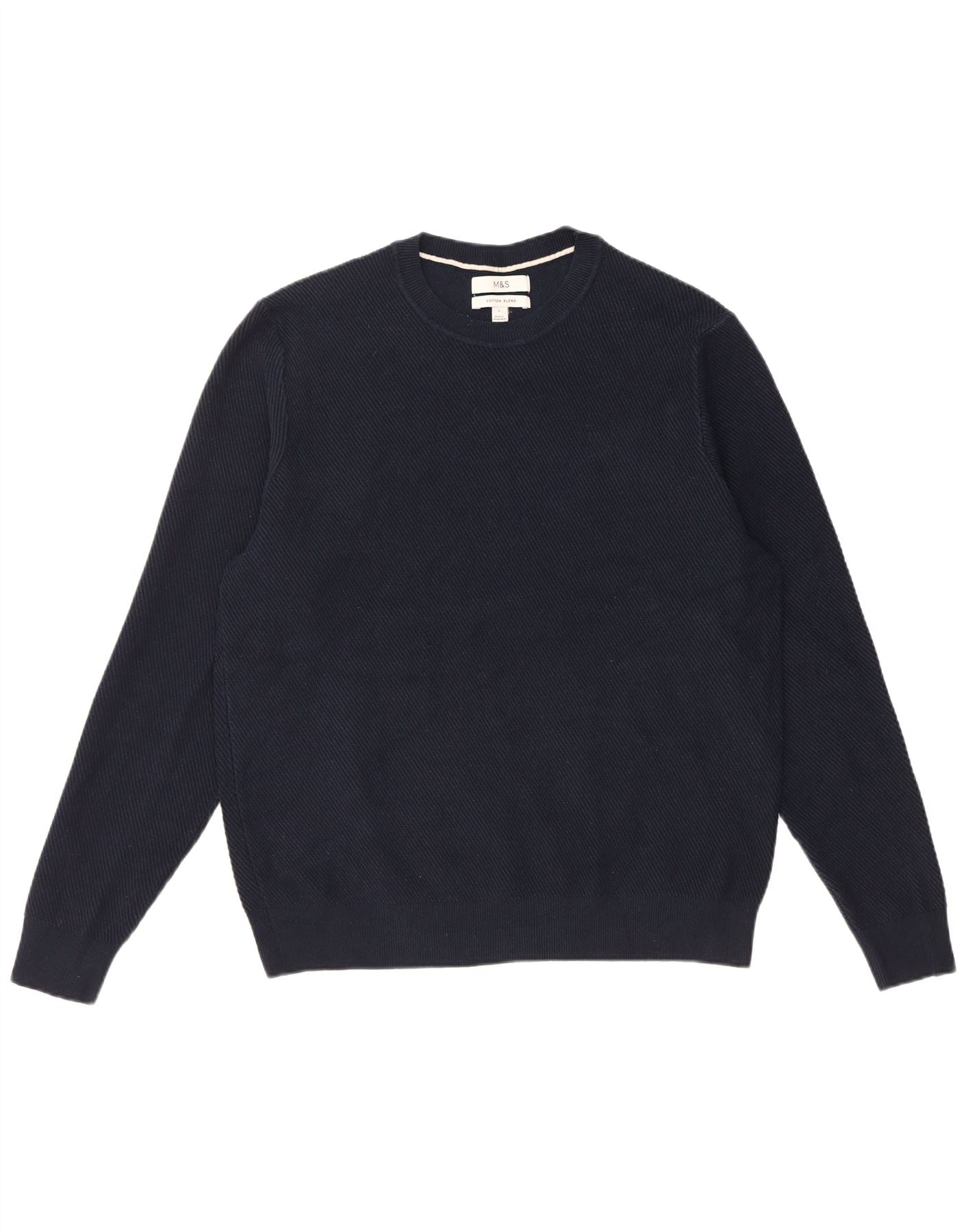 Marks & Spencer Herren-Pullover mit Rundhalsausschnitt, groß, marineblau, Polyester
