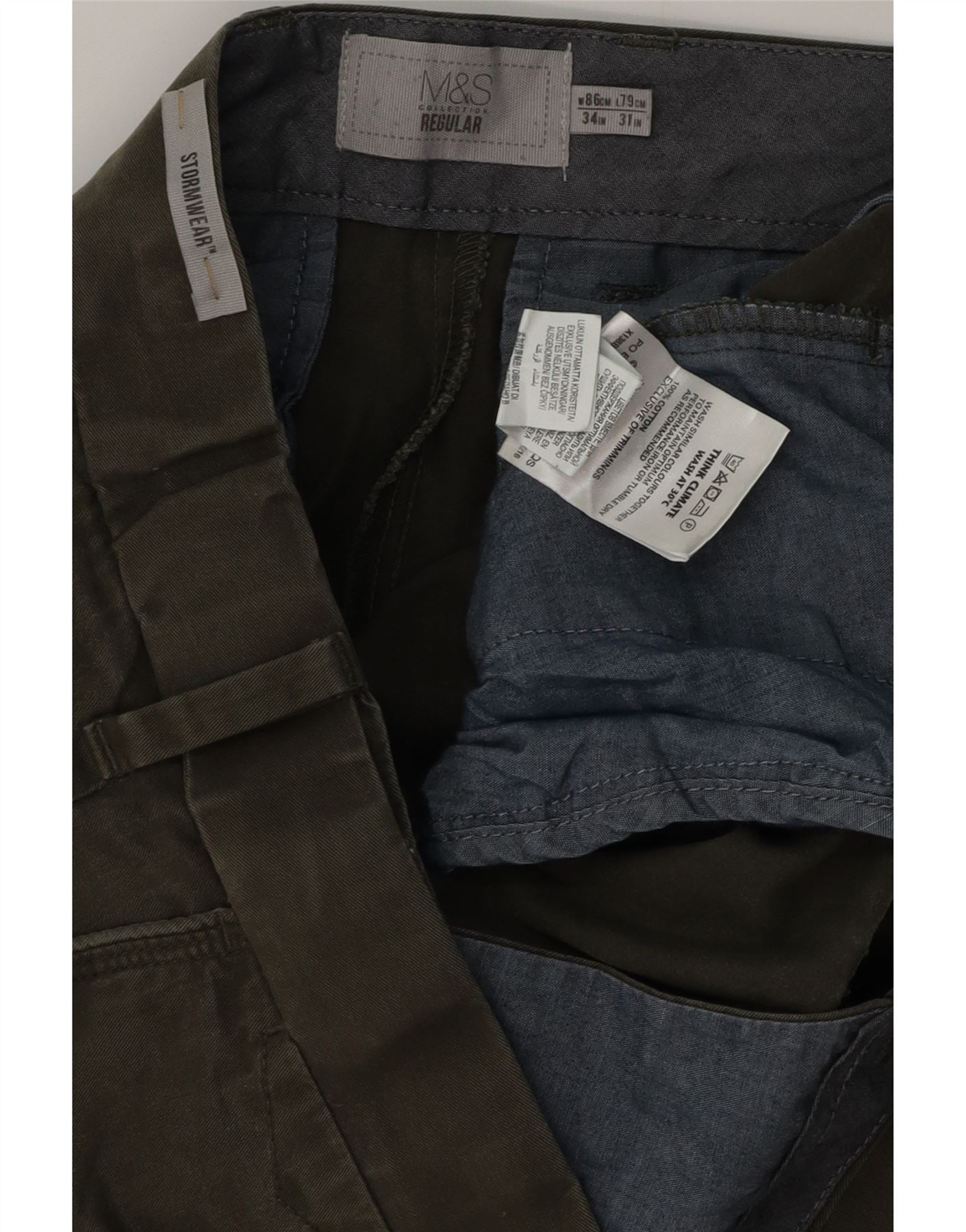 MARKS & SPENCER Herren-Chinohose mit normaler Passform, W34 L29, Khaki, Baumwolle